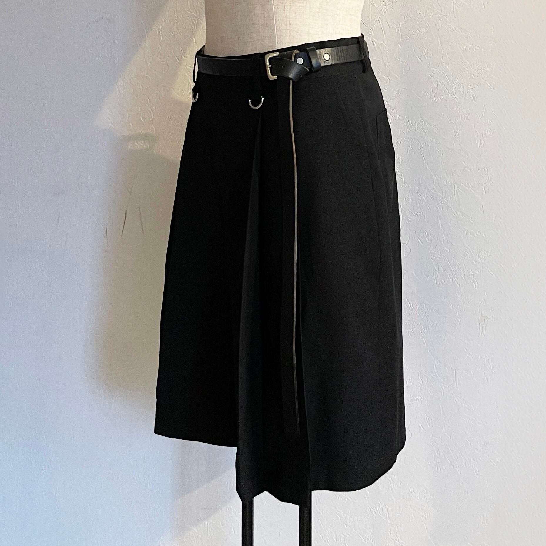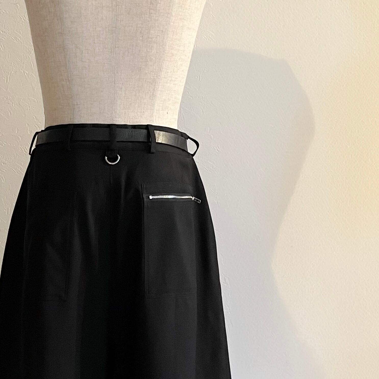 ・ボリューム感を出し、ウエストに60mm幅のタックを2本設ける事で綺麗な広がりとドレープ感があり、また膝下ぐらいまでの着丈でワイドなシルエットで尚且つサイズ感は大きめです。
