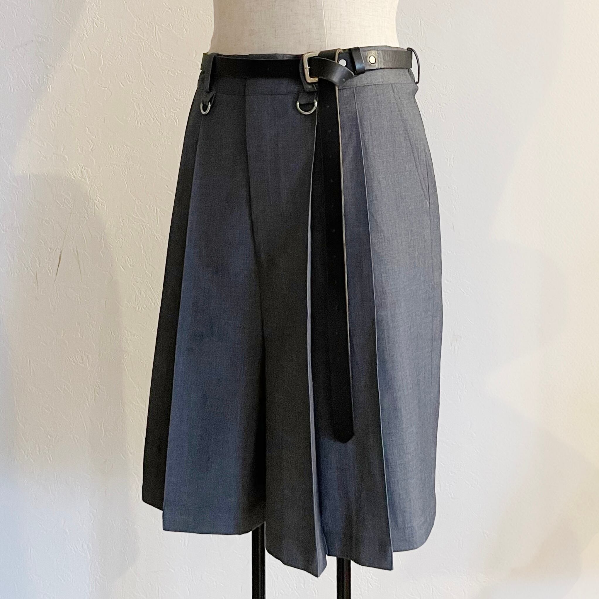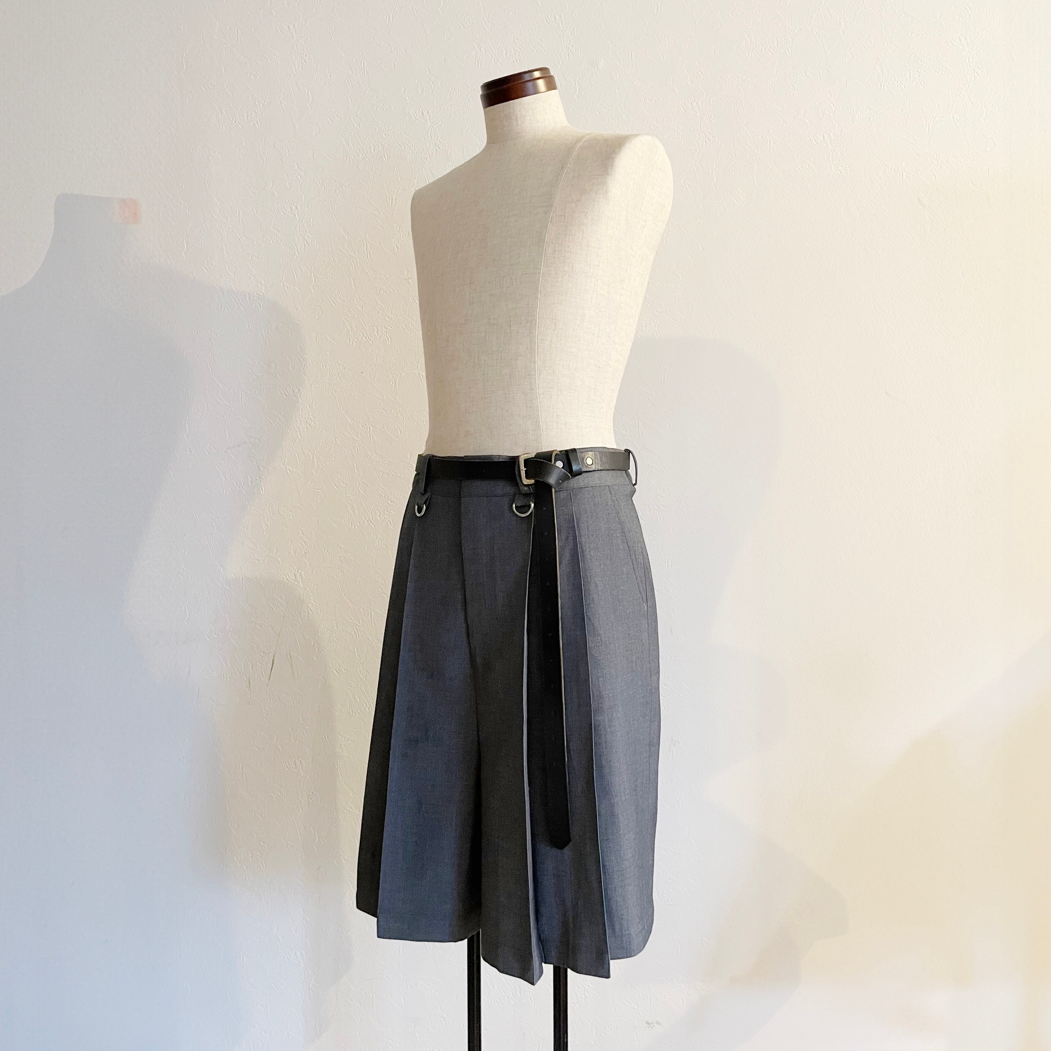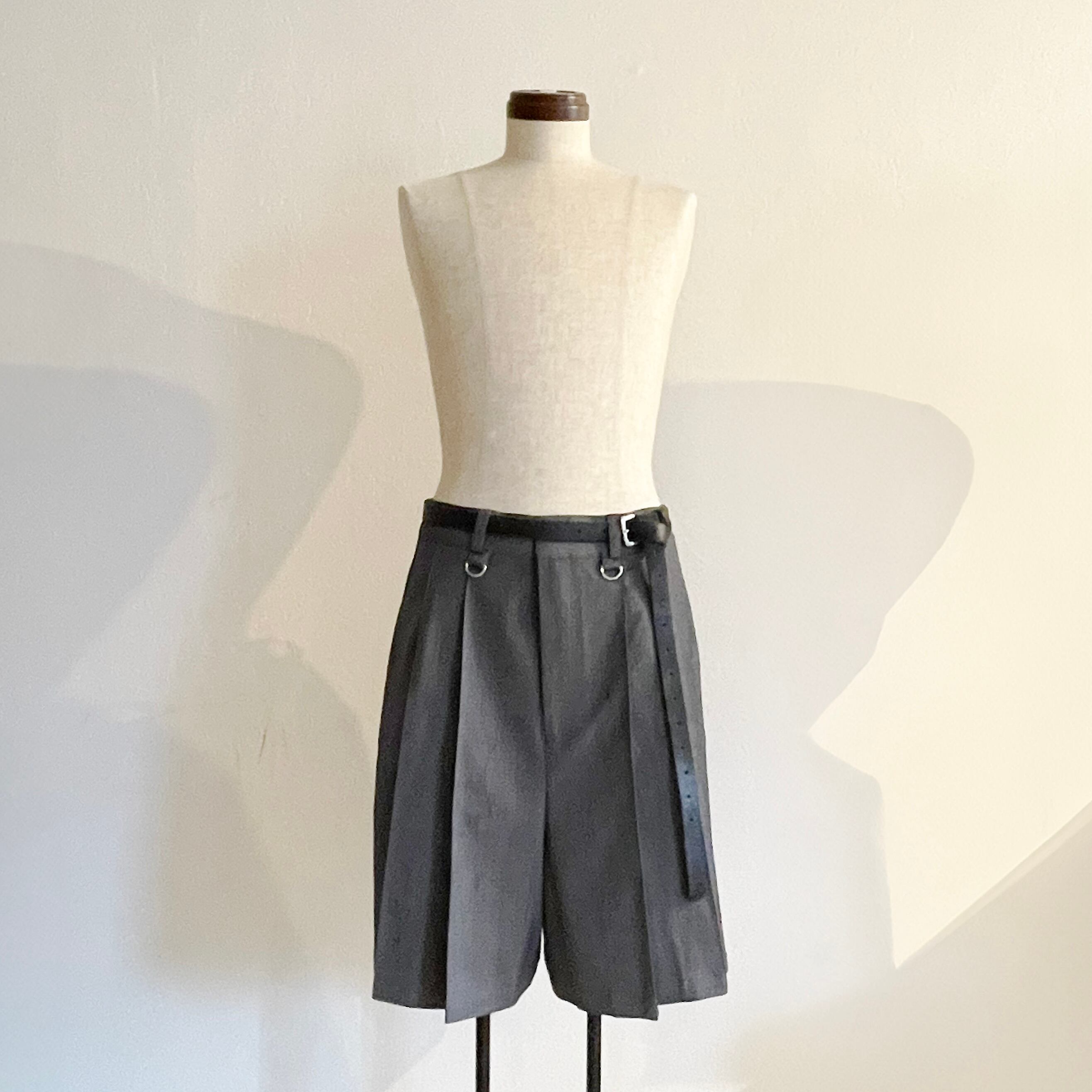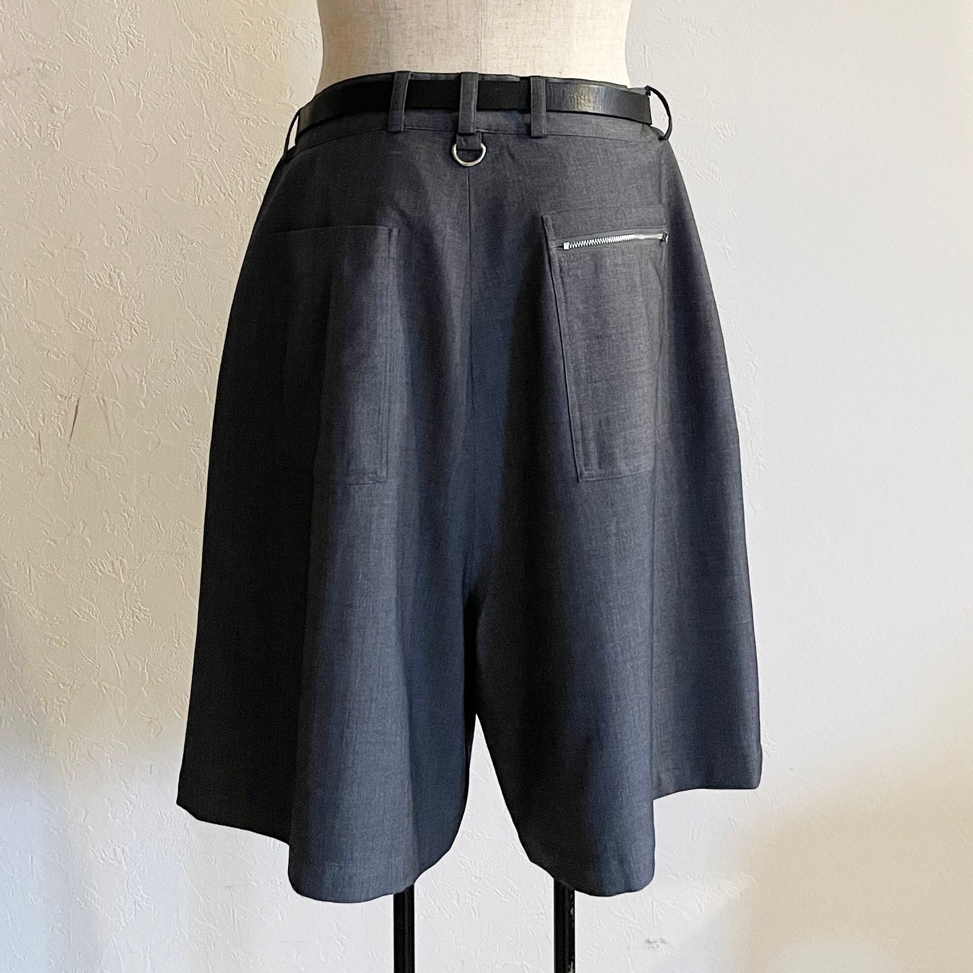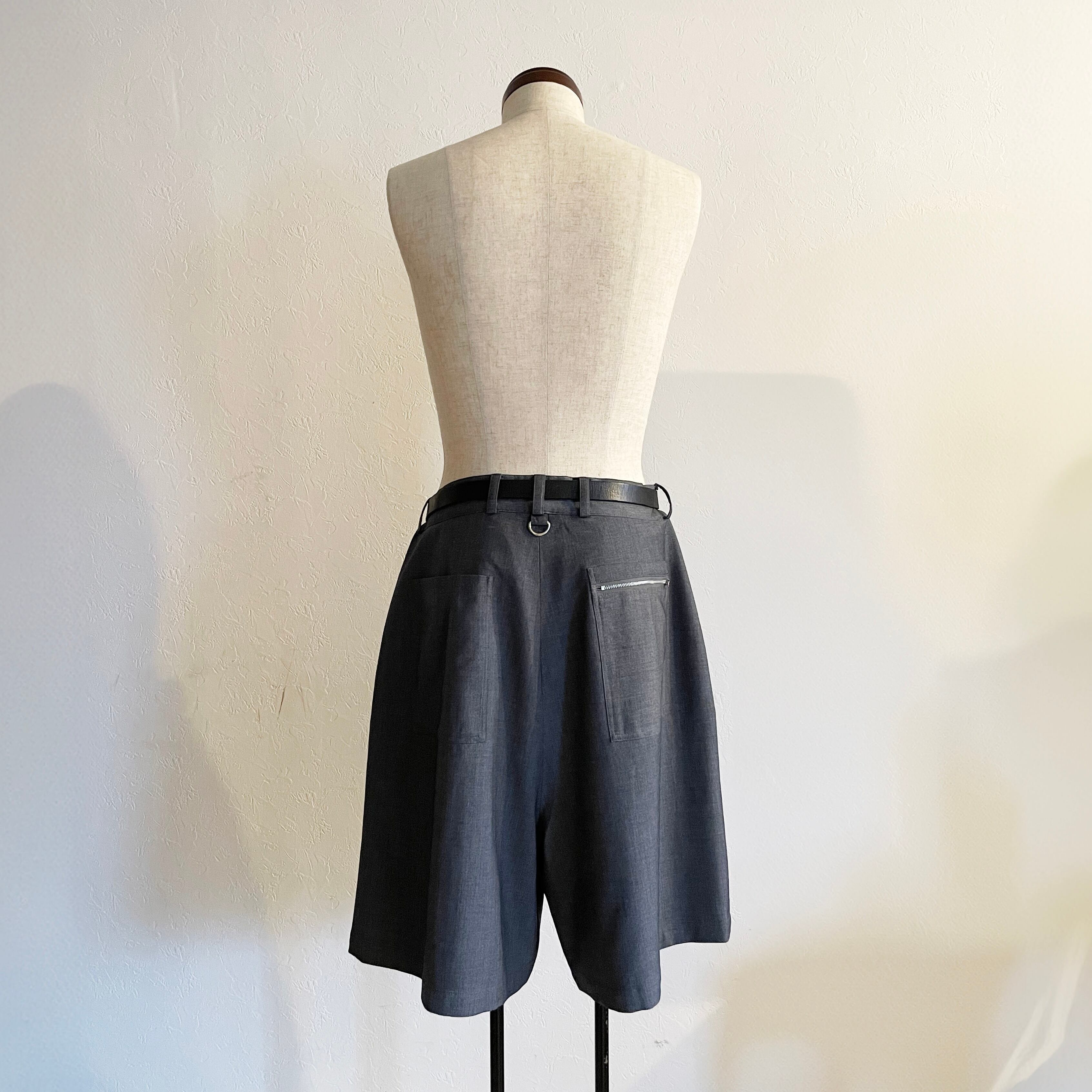 ・ワイドシルエットにて作成したスーツ地のショートパンツです。