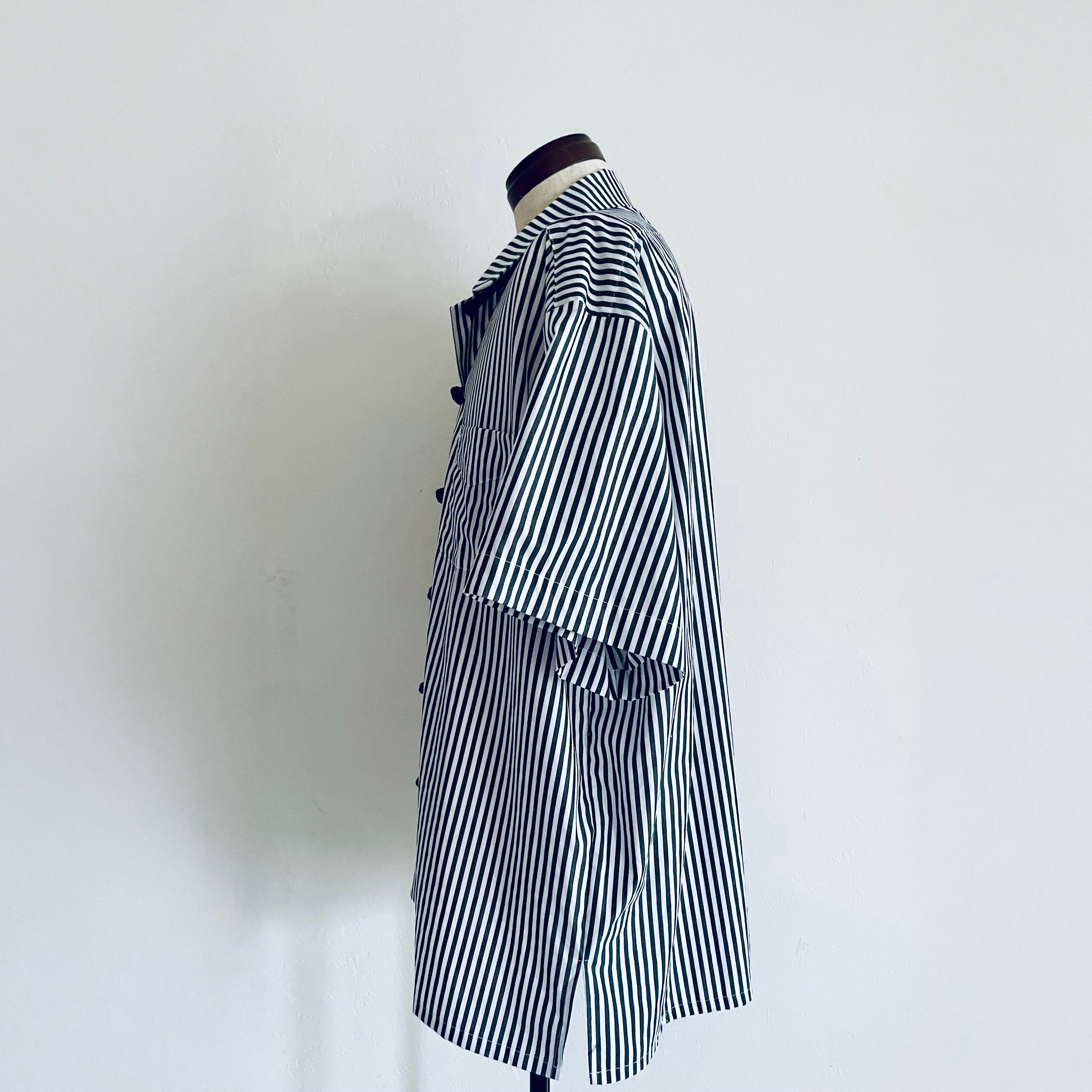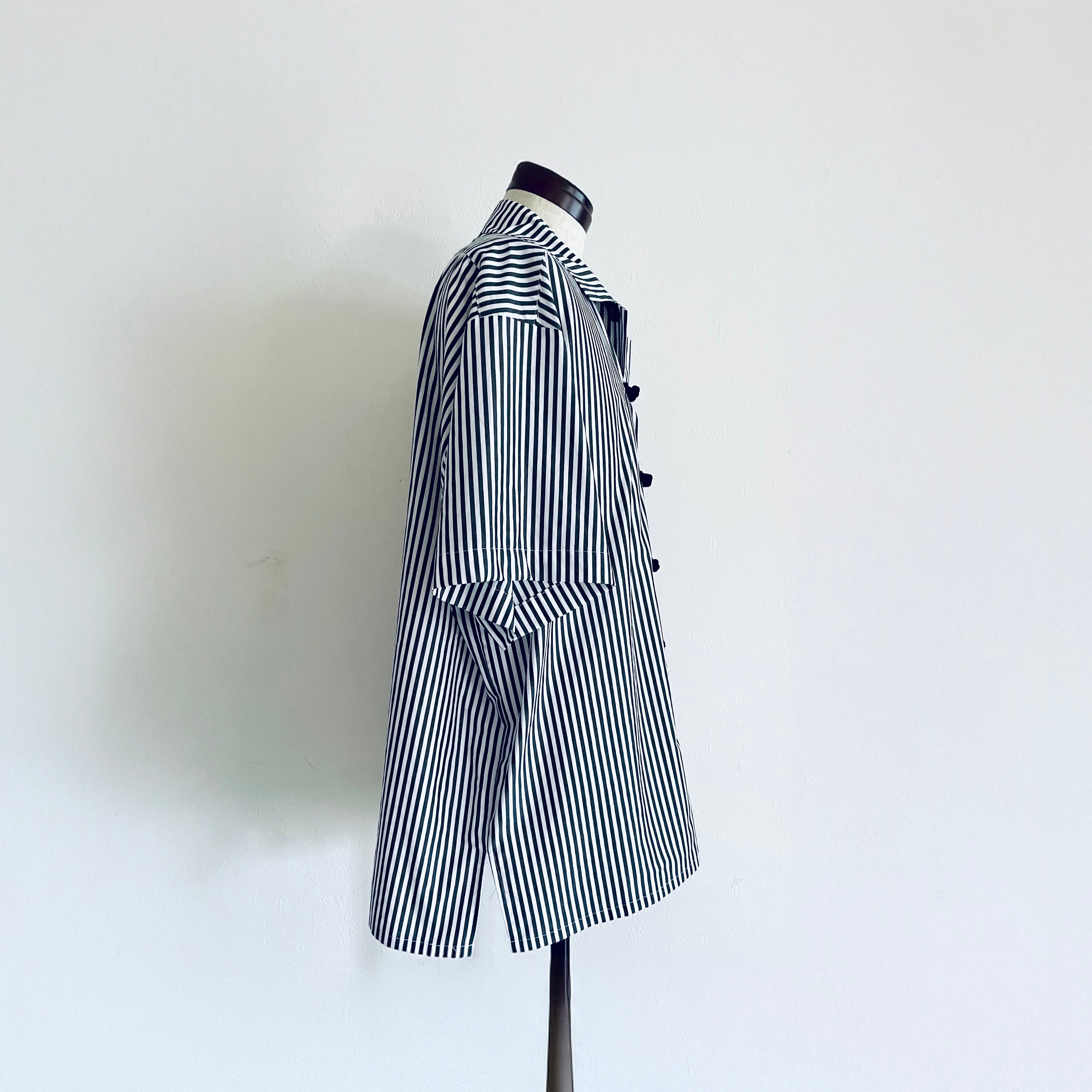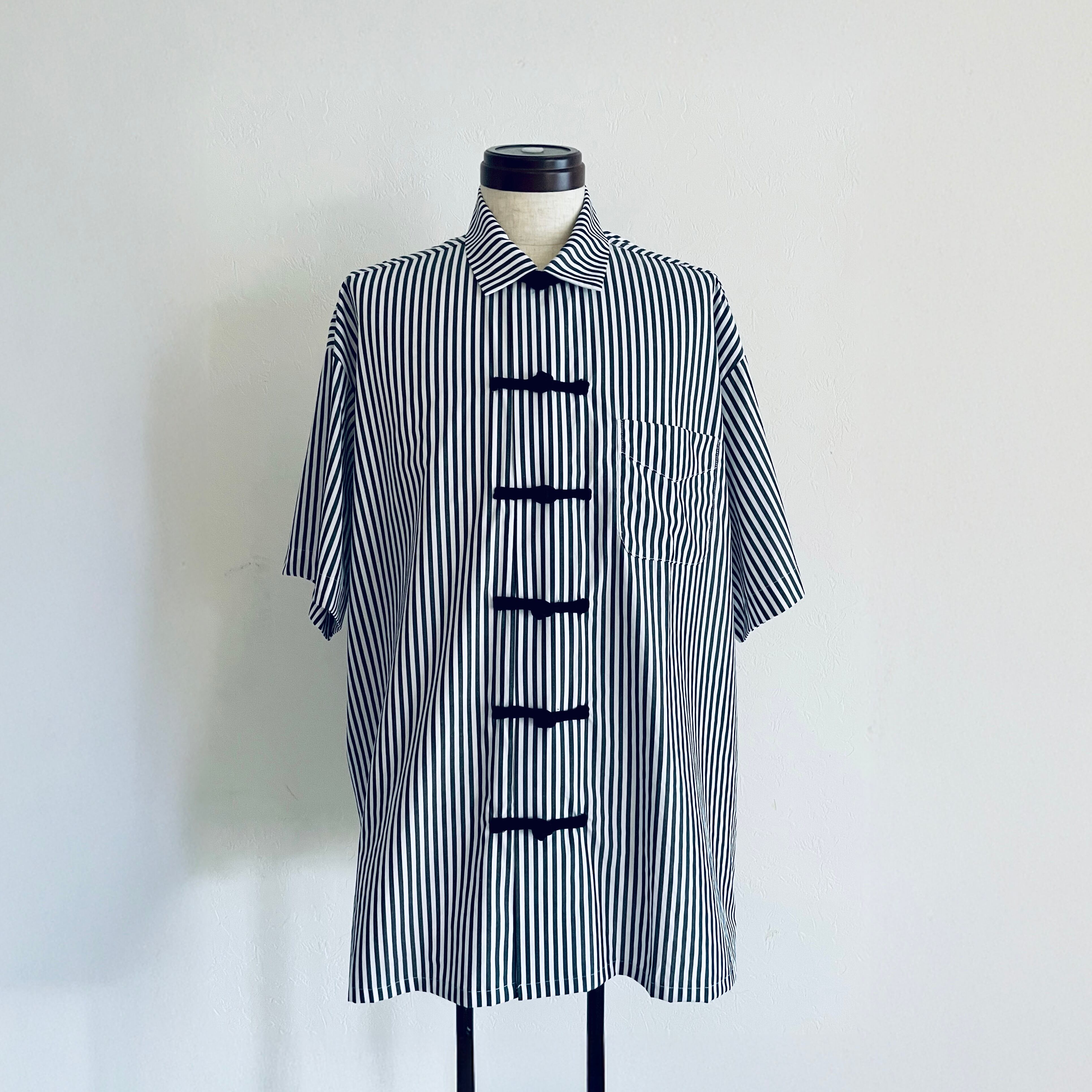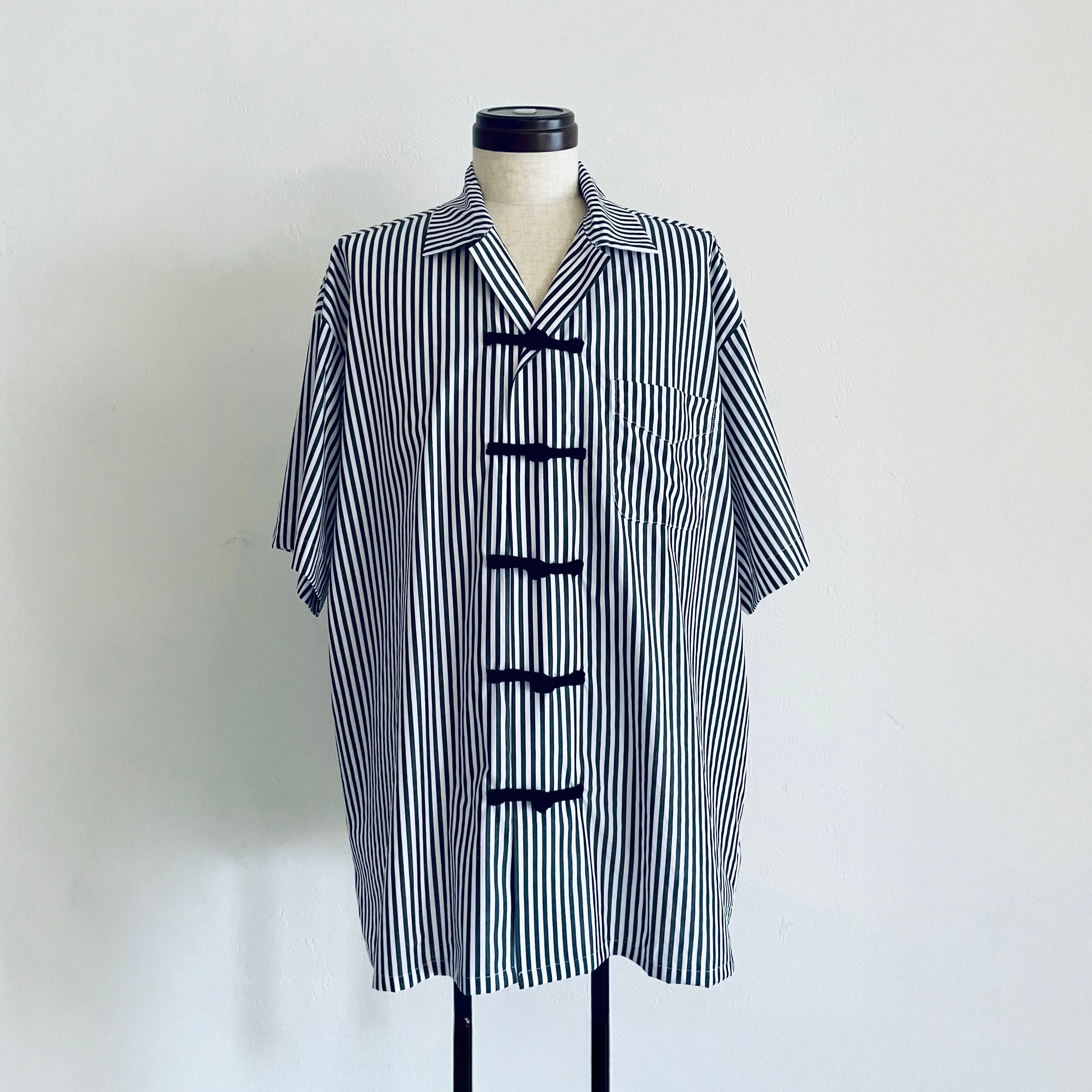 Short-Sleeved China Button Shirt/ Black:White stripe