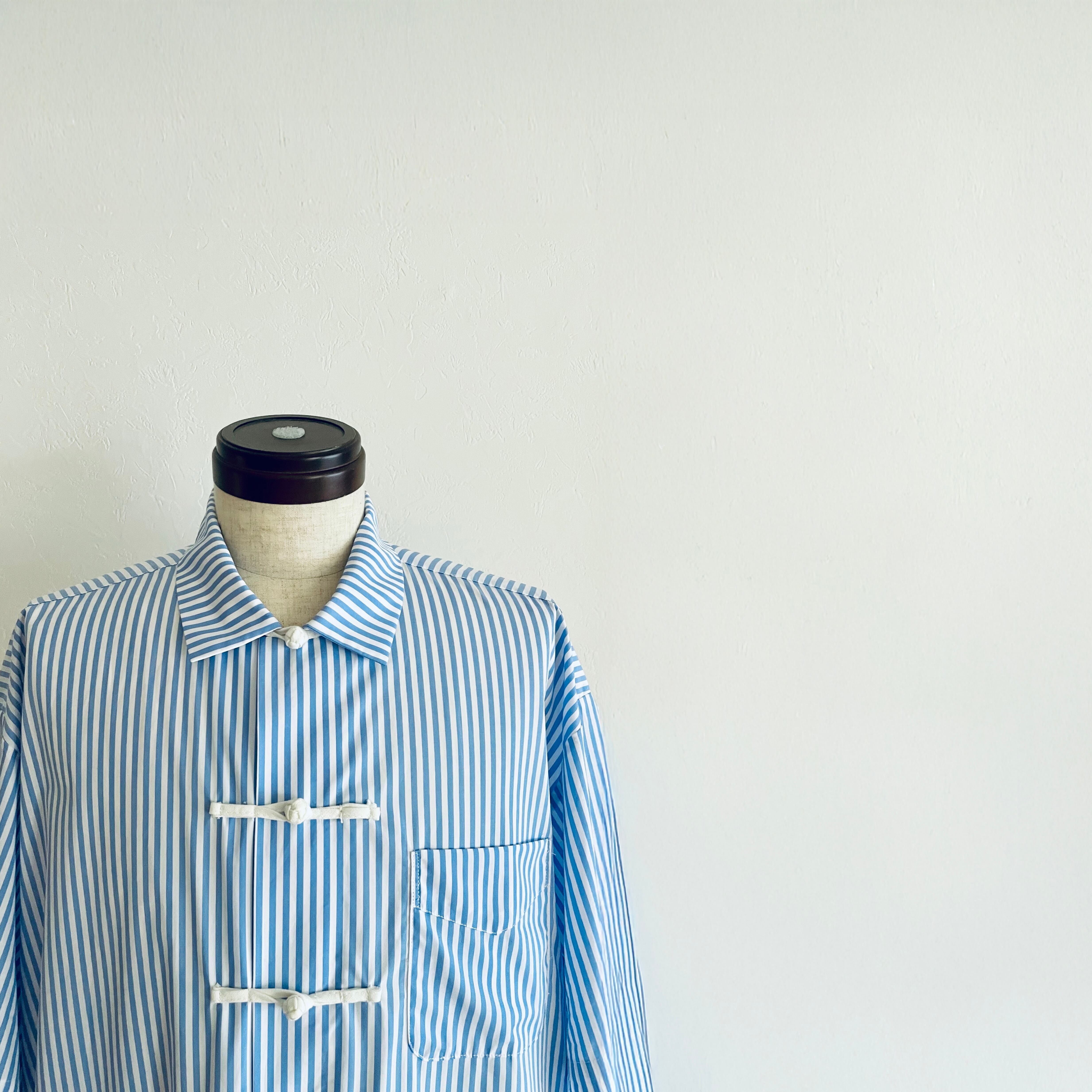 3. サックスブルーストライプ × 白チャイナボタン