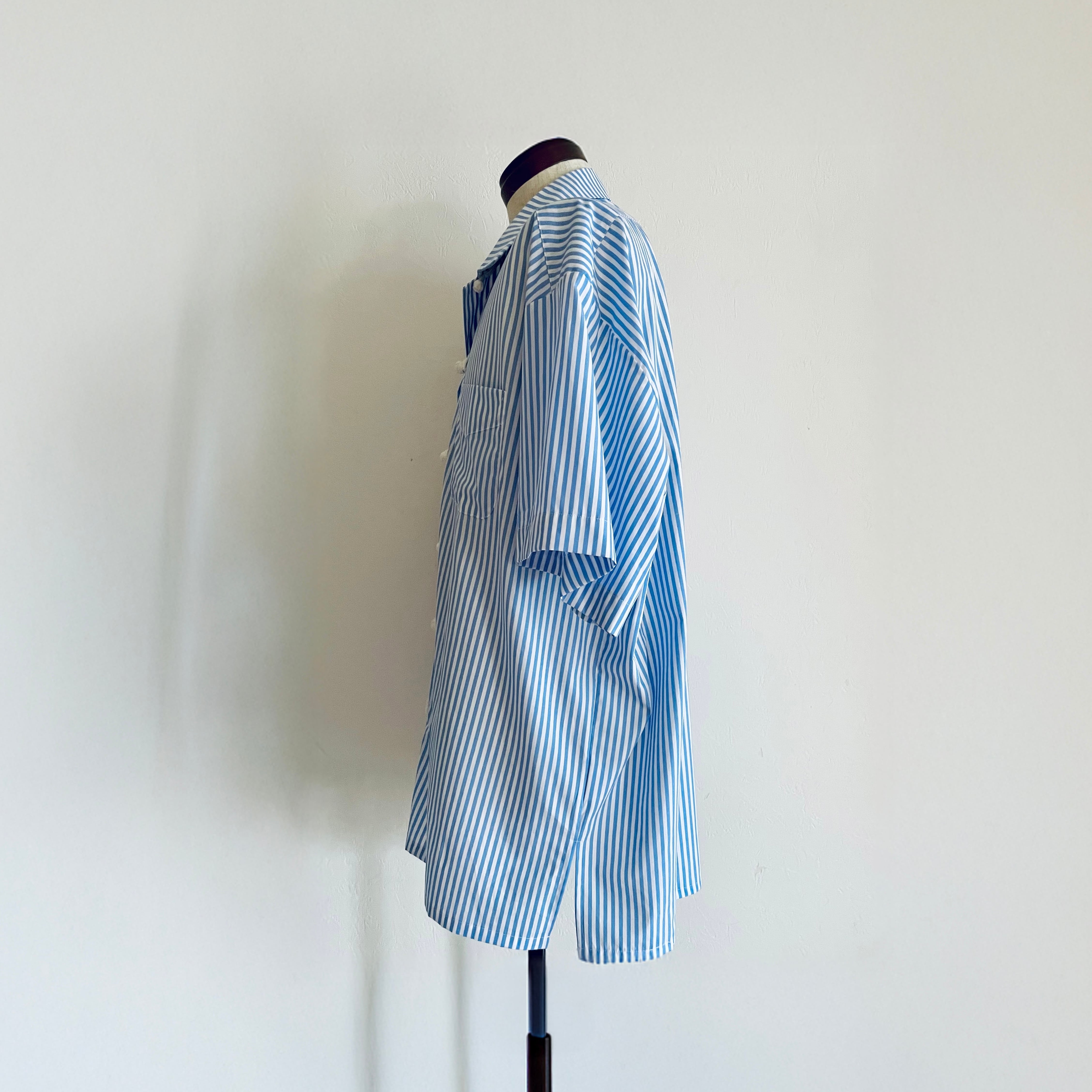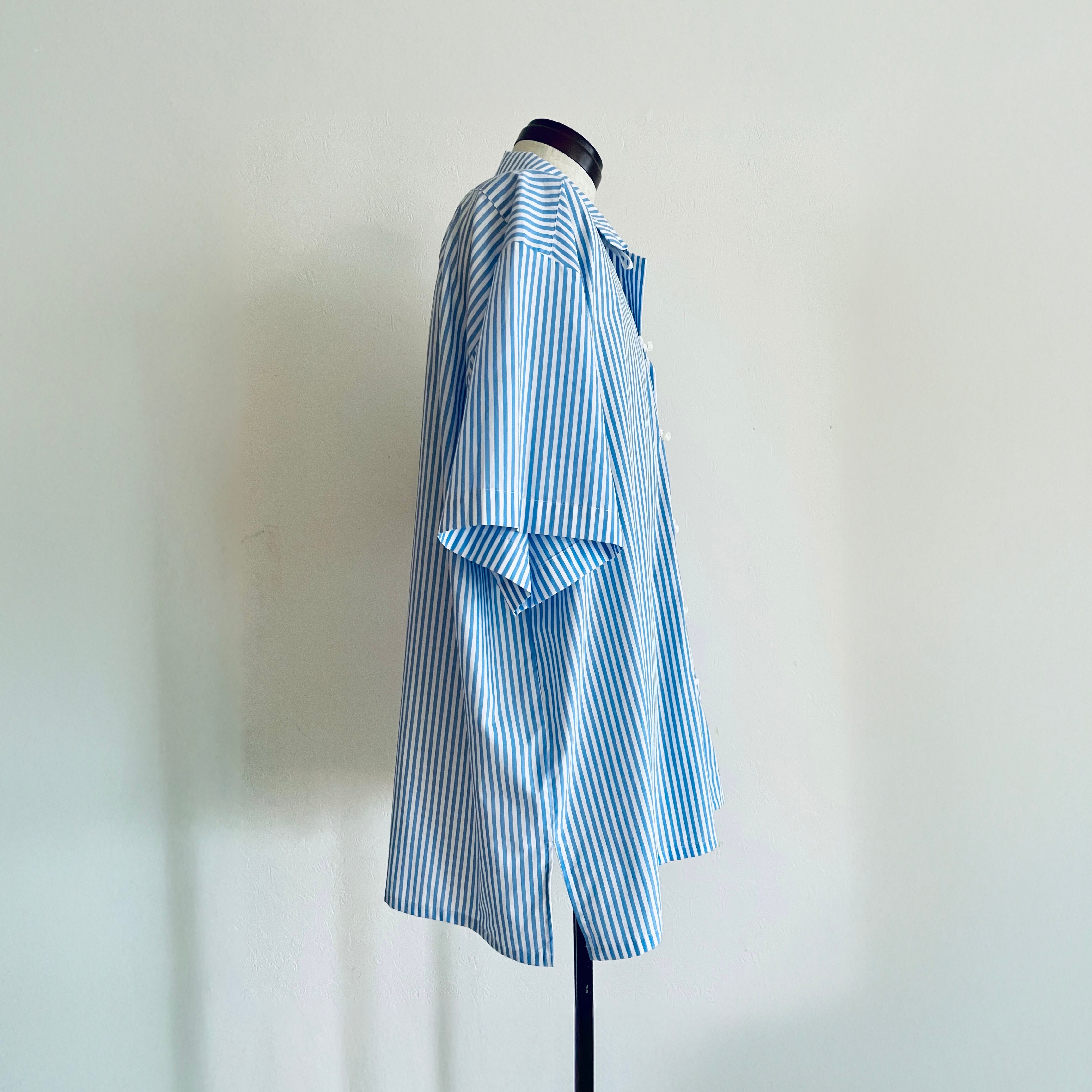 Short-Sleeved China Button Shirt/ Sax blue : White stripe