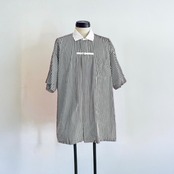 Short-Sleeved single China Button Shirt/ Black:White stripe