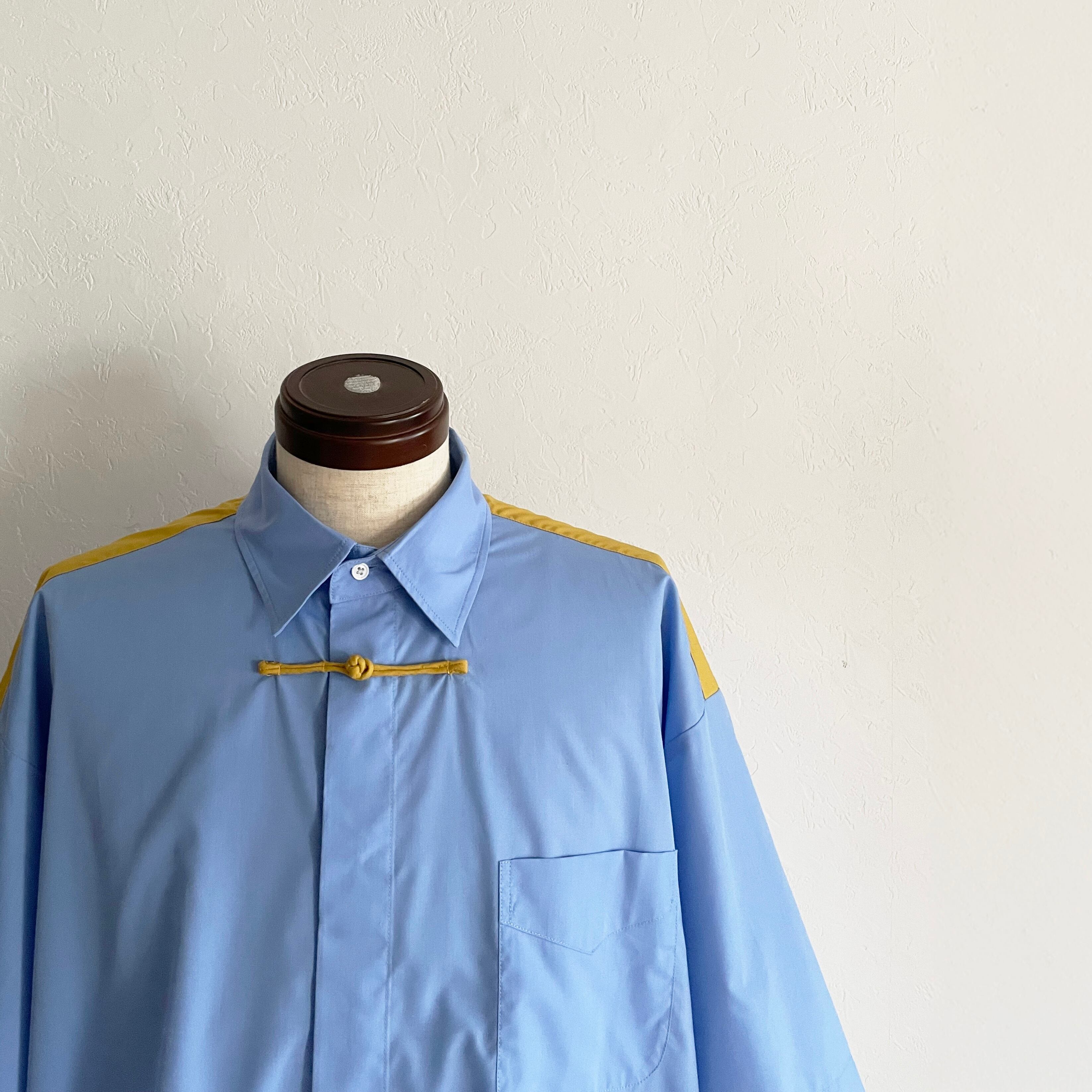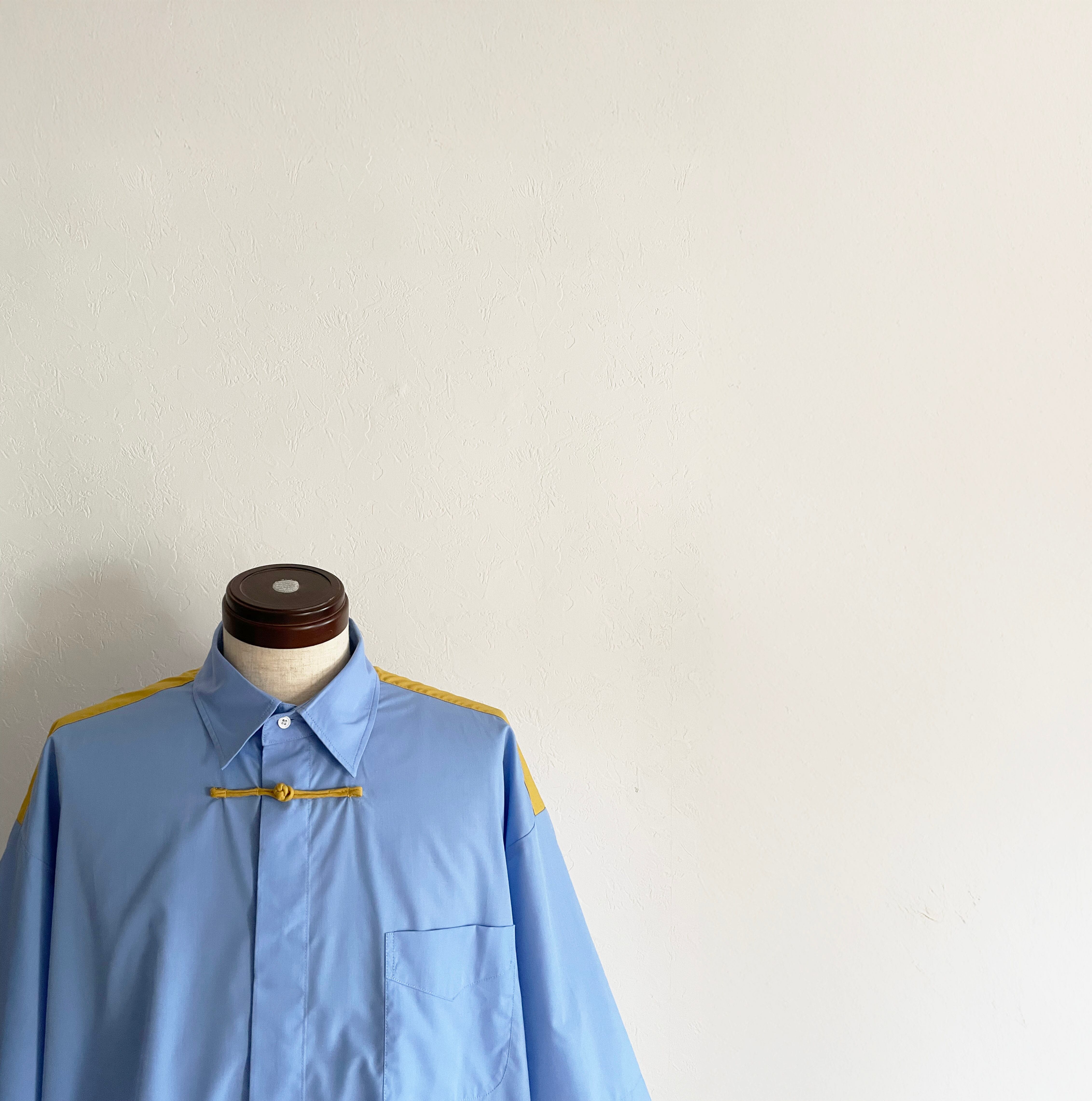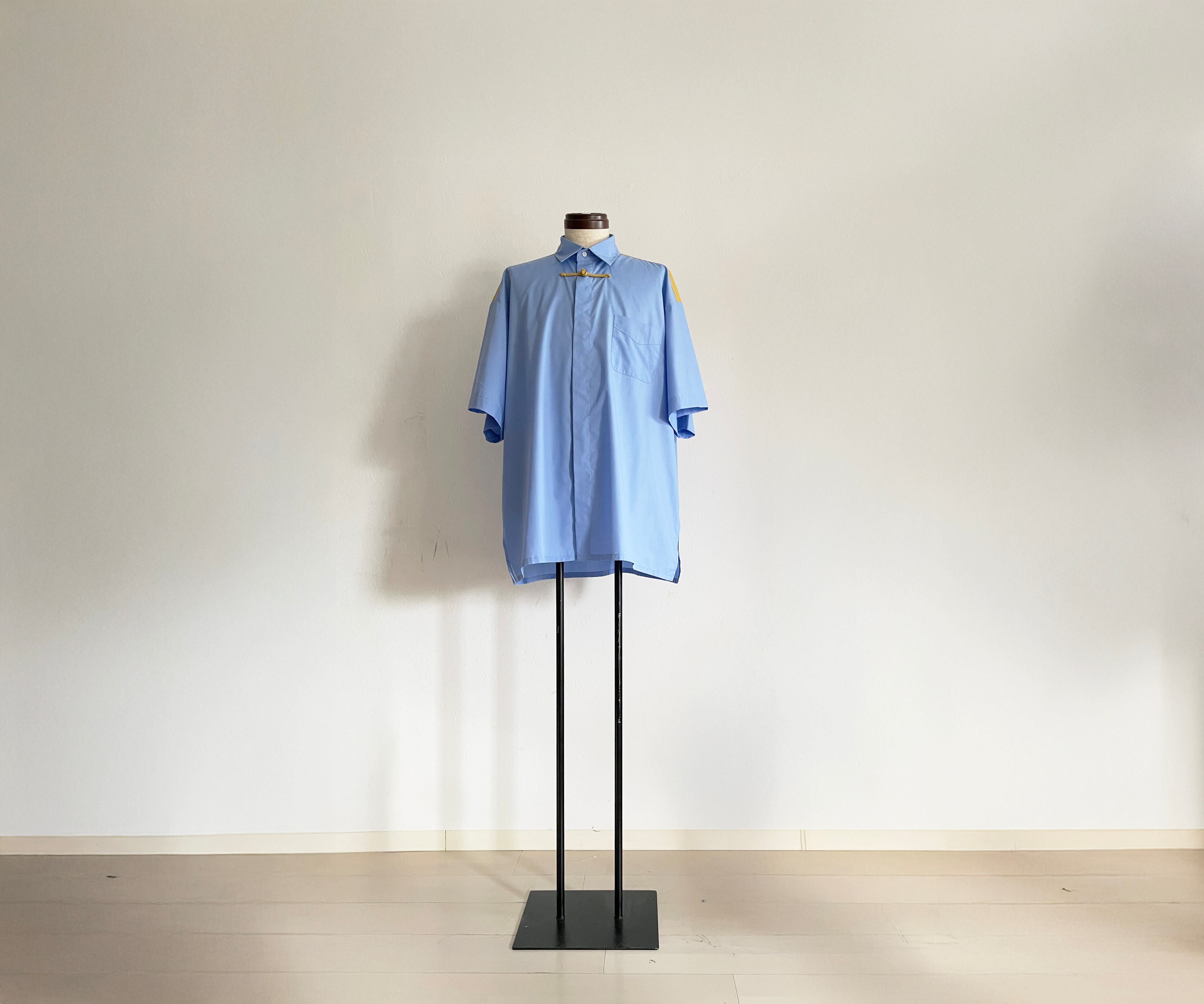 Short-Sleeved single China Button Shirt/ Sax Blue: Masterd