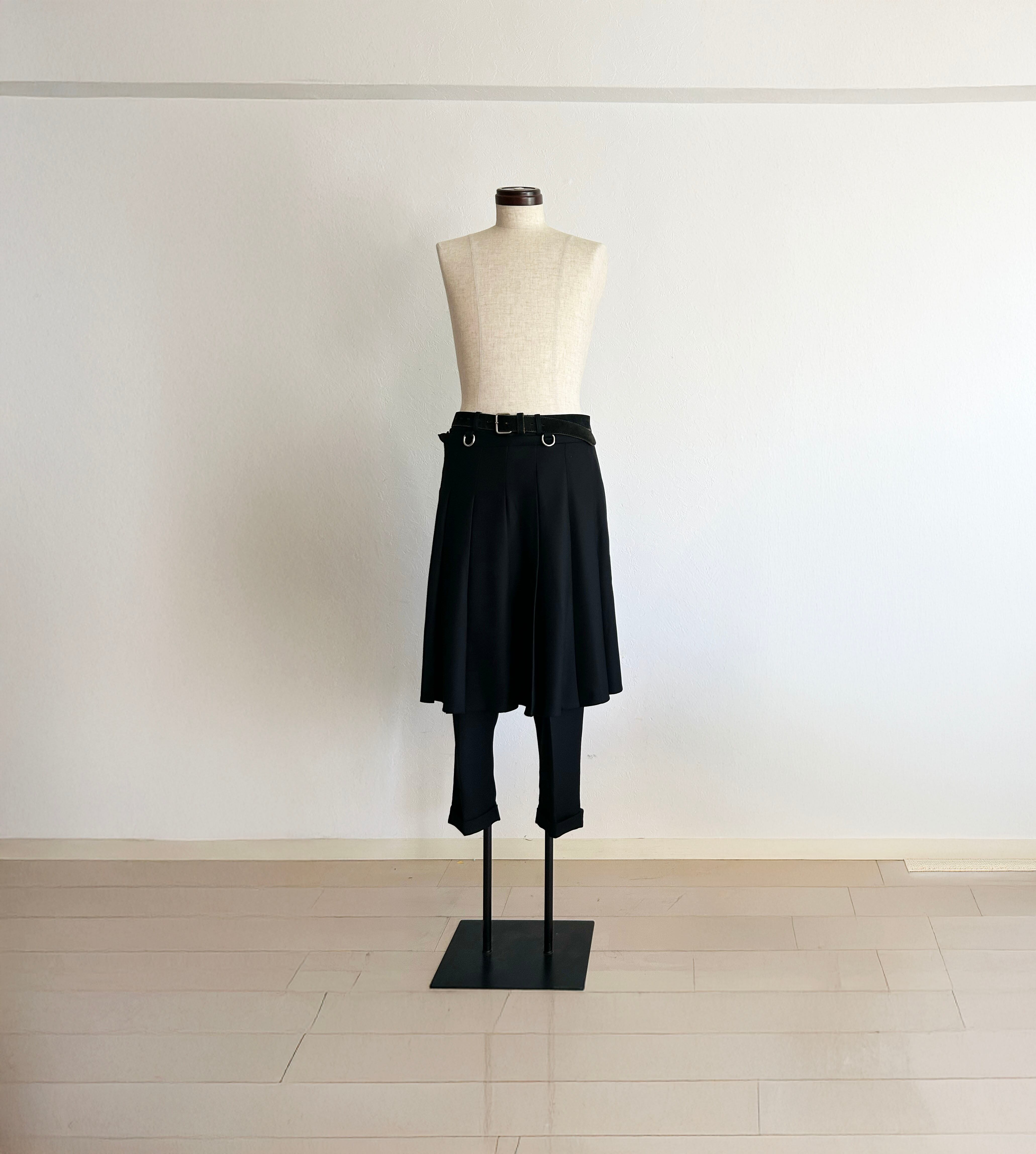 ヒップラインを覆うスカートが、動きと奥行きを生み出す。