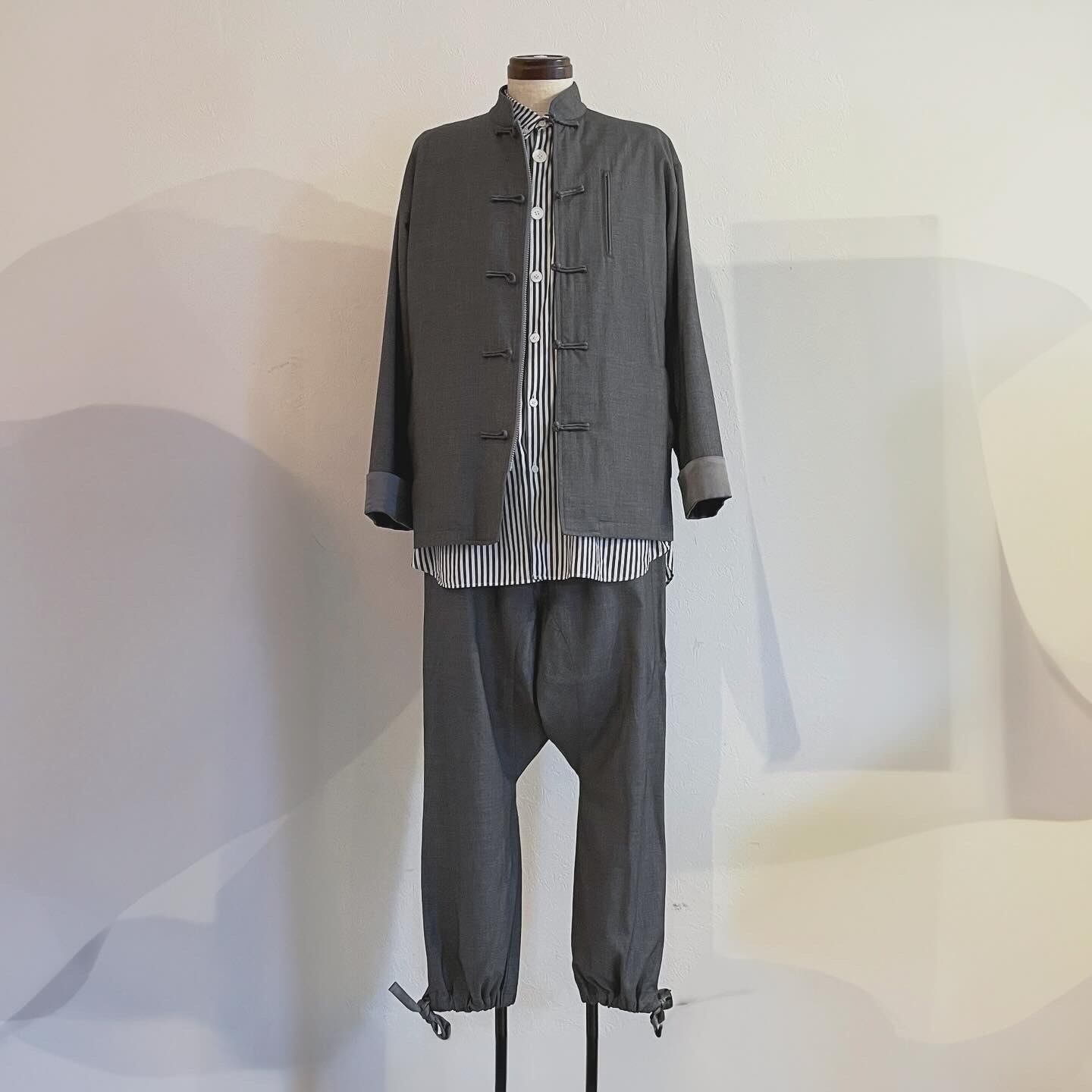 スーツ地で作られたカンフーパンツ(チャイナジャケットのセットアップパンツ)になります。