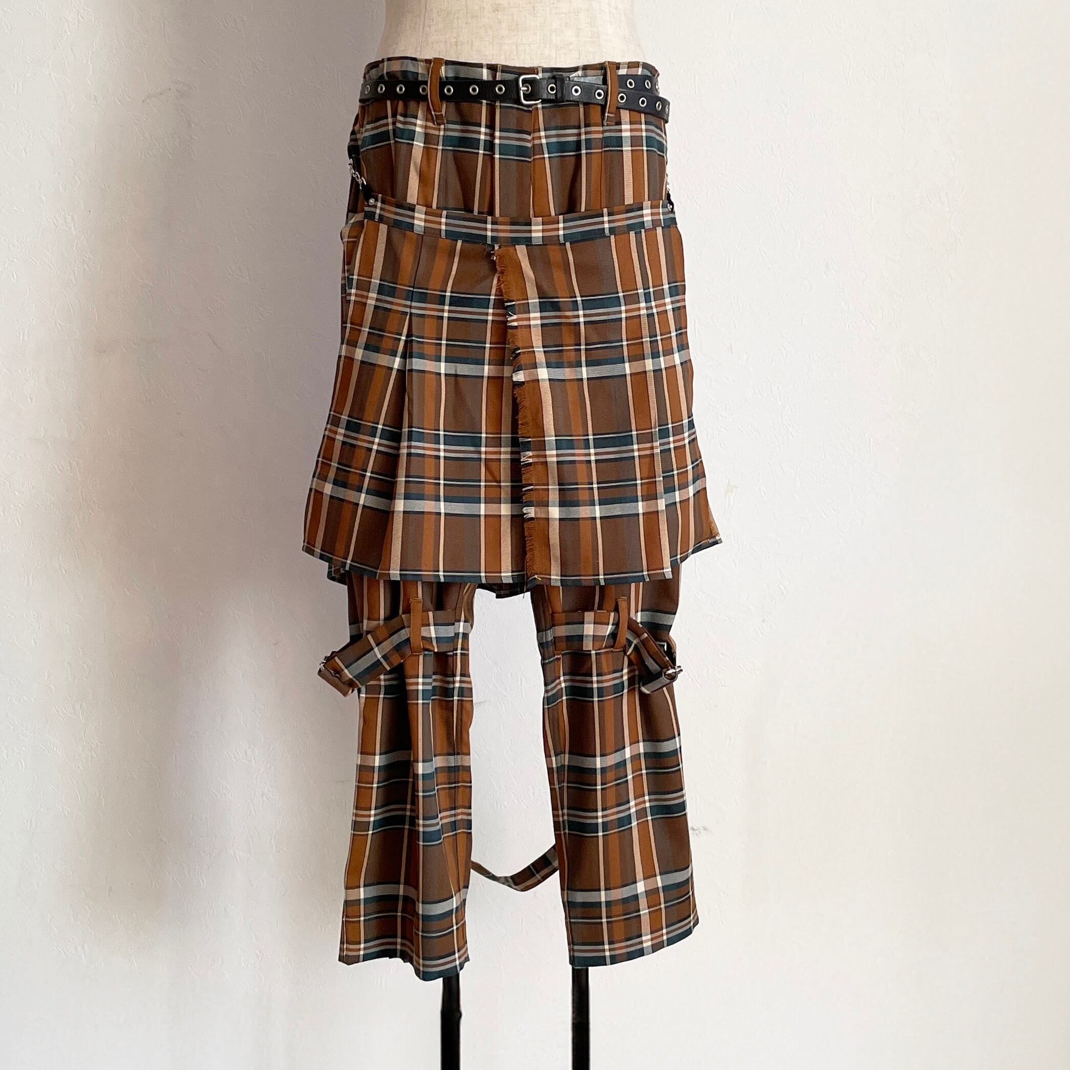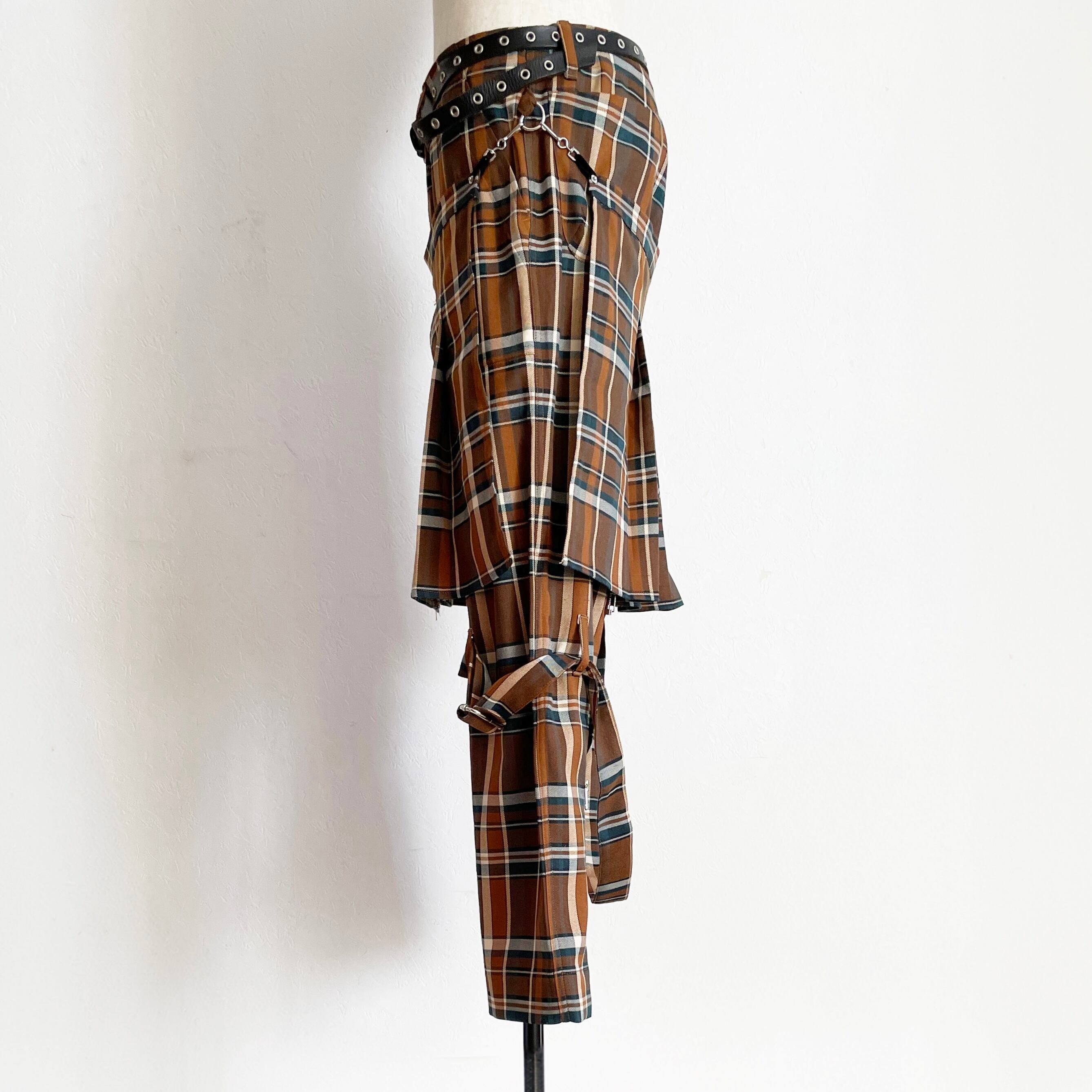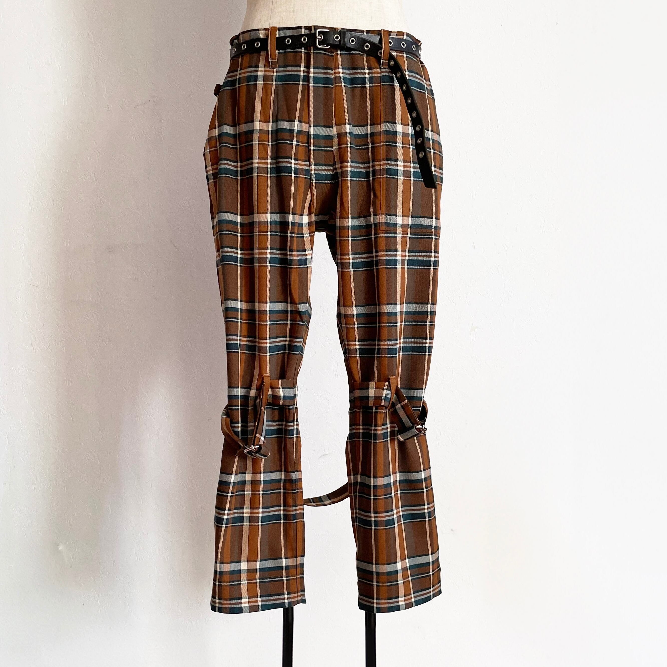 ブラウン系タータンチェックで作製されたボンテージトラウザーズです。