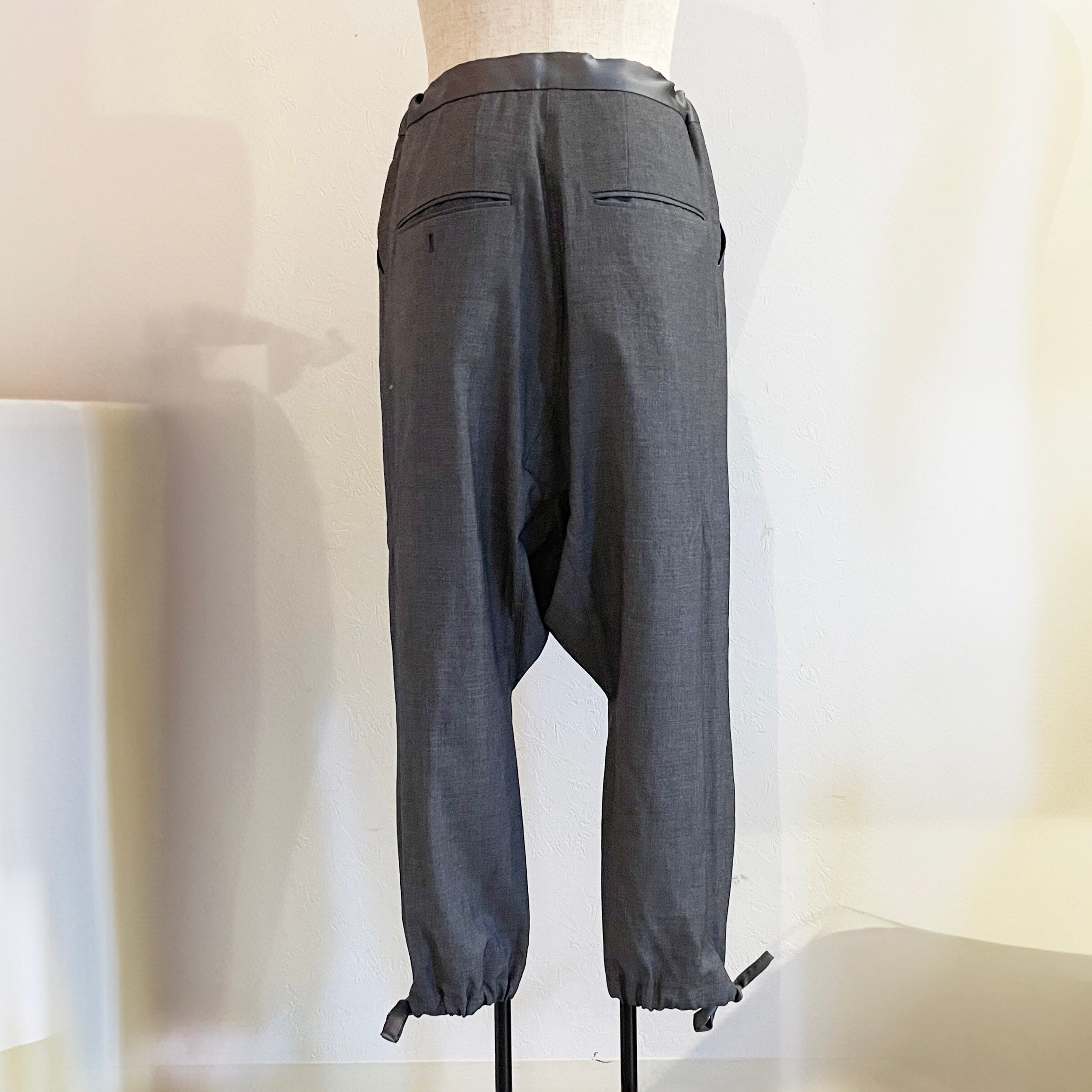 ・シルエットは膝までゆったりとしたシルエットでサルエルパンツのデザインである股上も大きく取り、膝下から細くテーパードしており、綺麗なシルエットでゆったりとした物にしております。