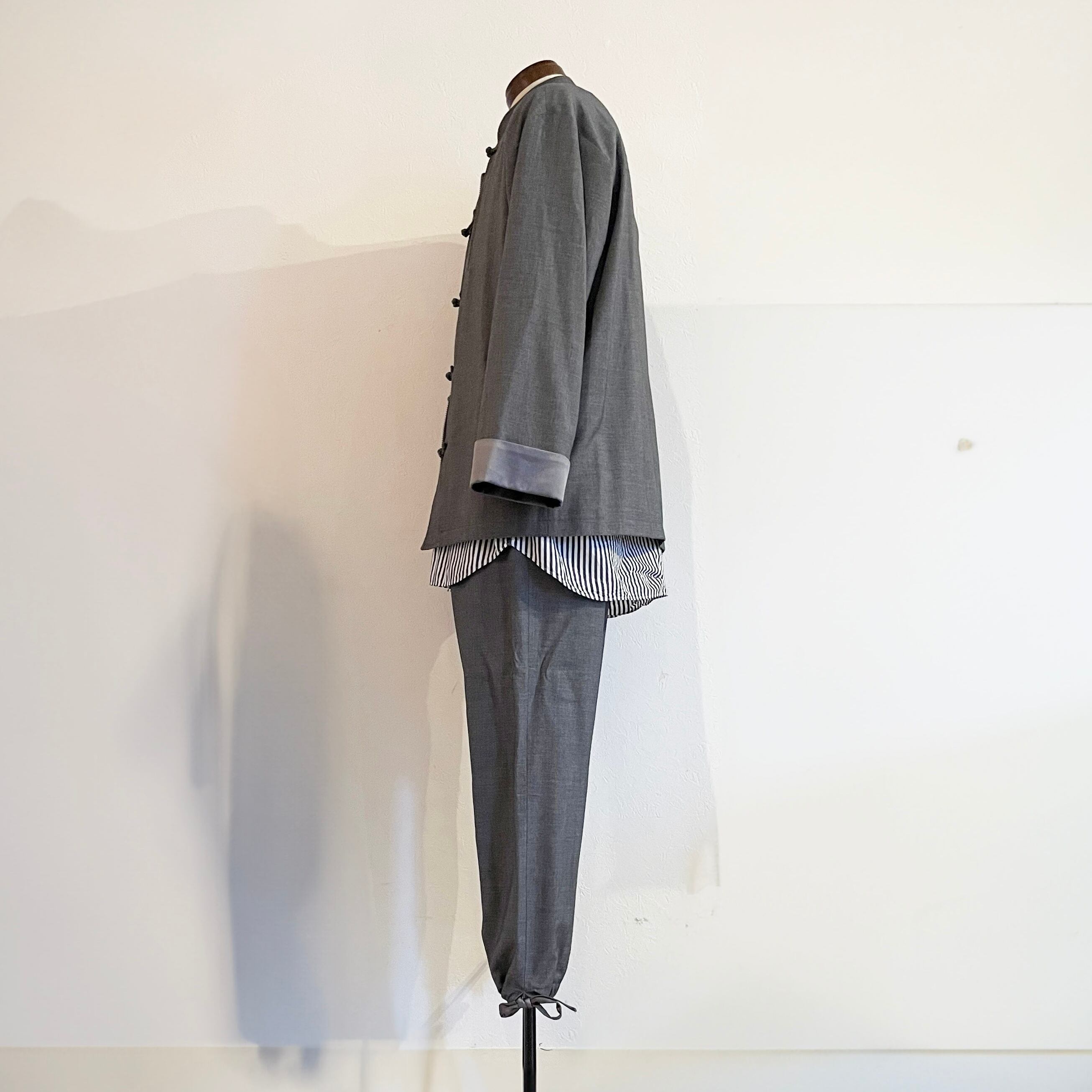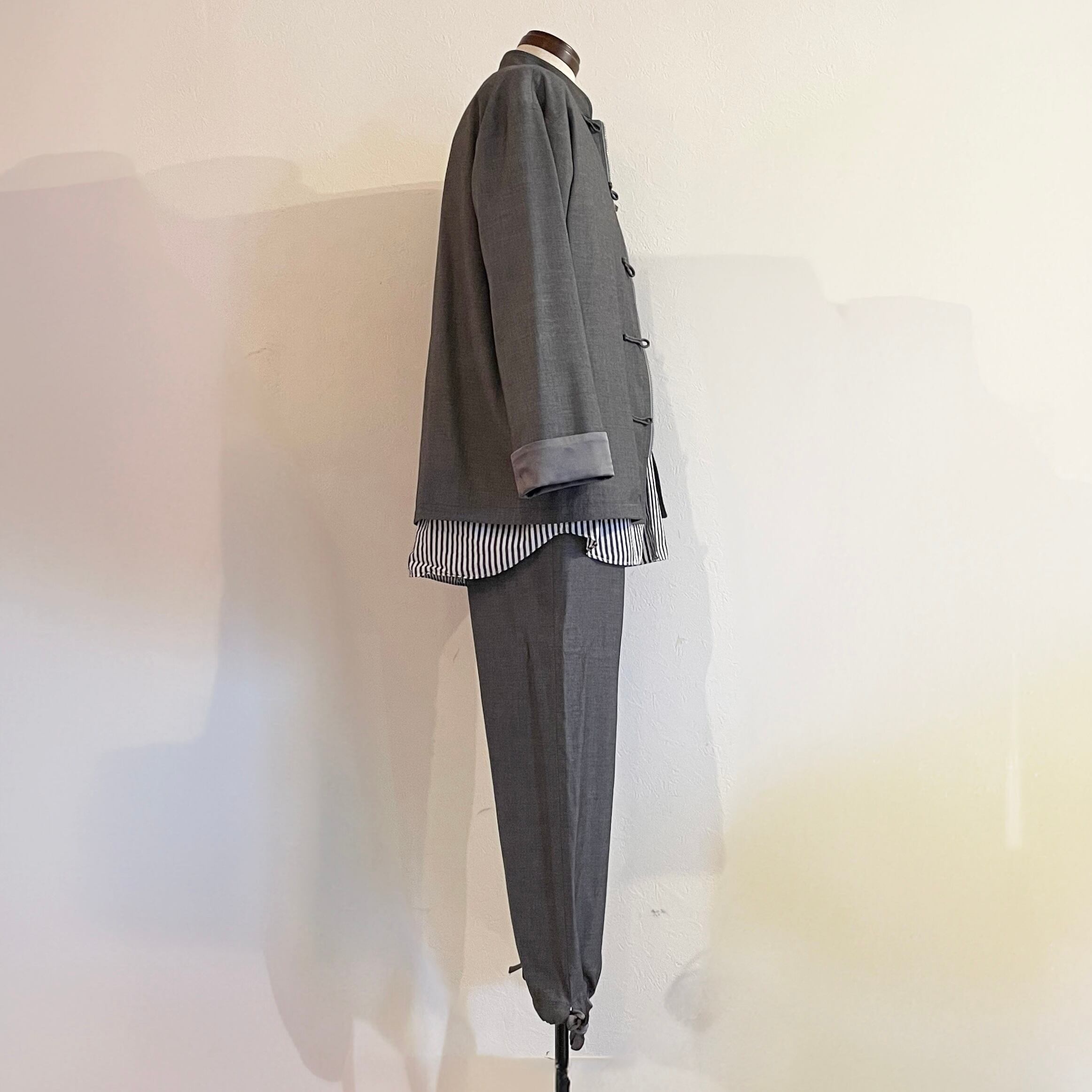 スーツ地で作られたカンフーパンツ(チャイナジャケットのセットアップパンツ)になります。