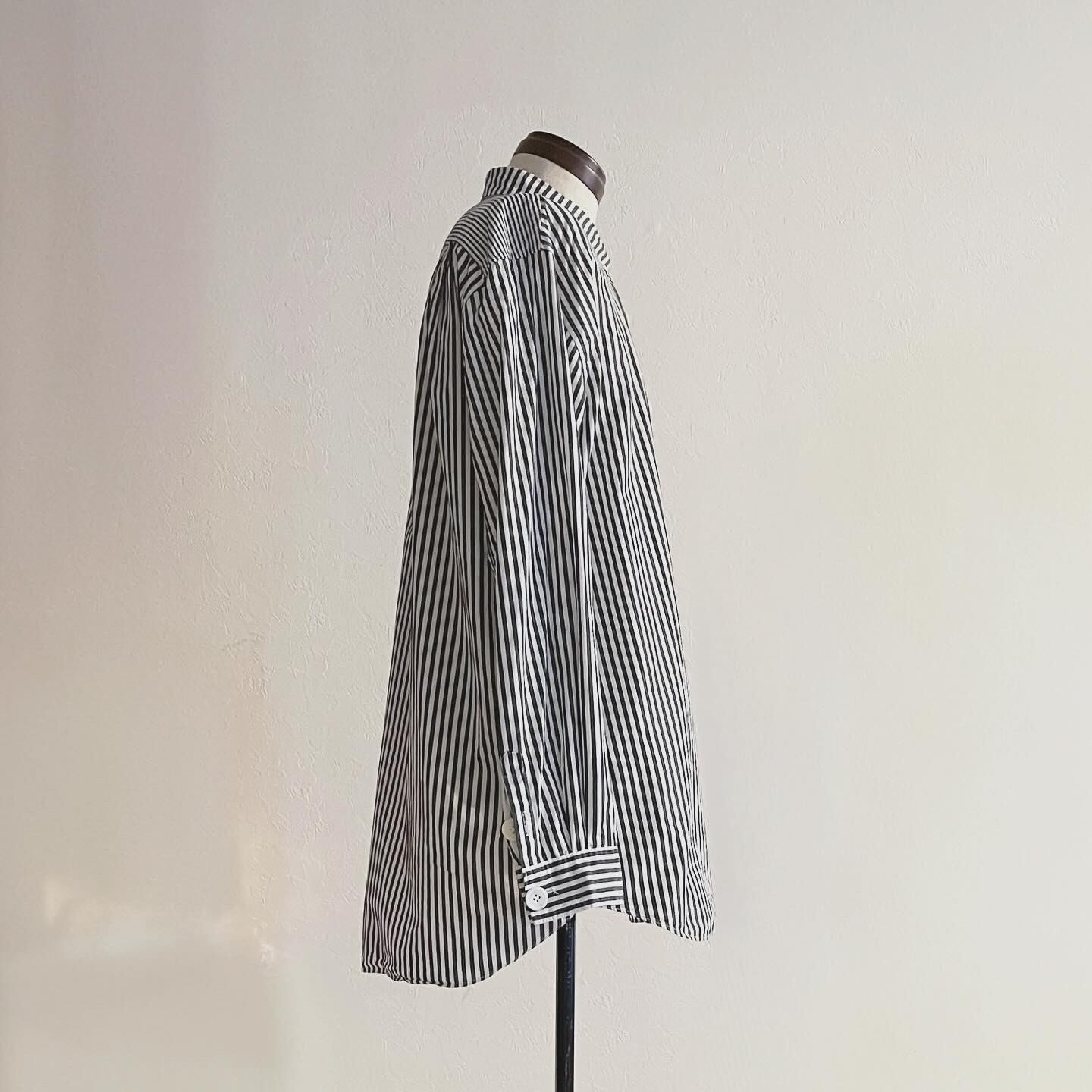 progressively smaller button stripe shirts(Black/White)