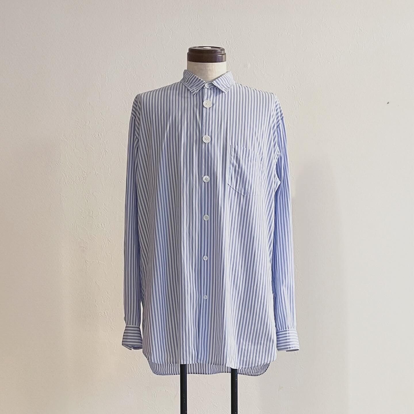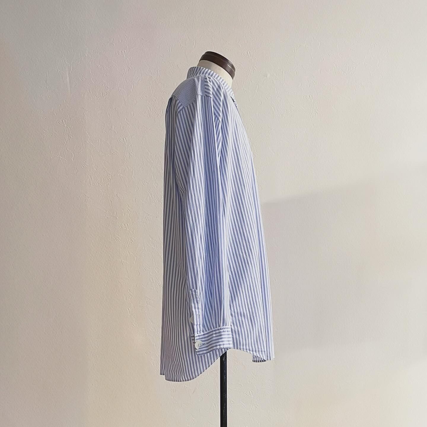 progressively smaller button stripe shirts(Sax blue/White)