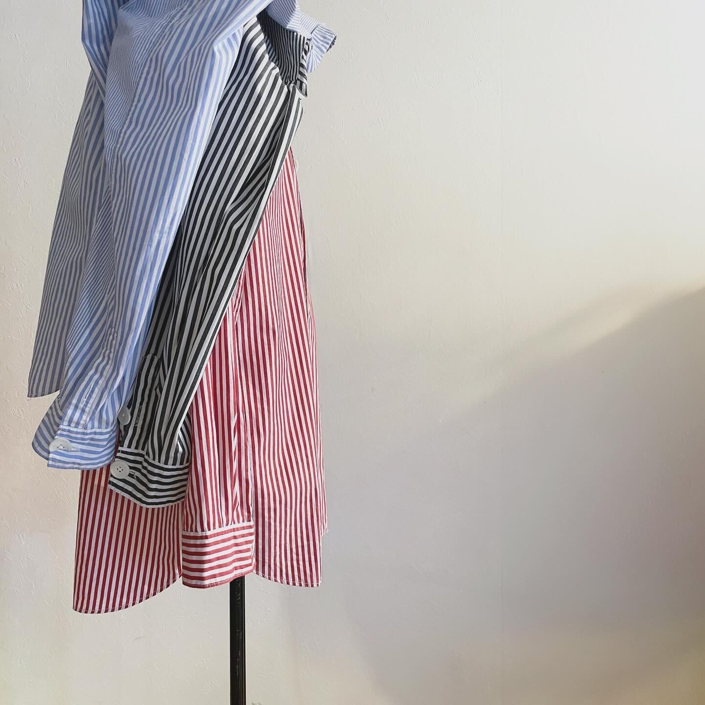 progressively smaller button stripe shirts