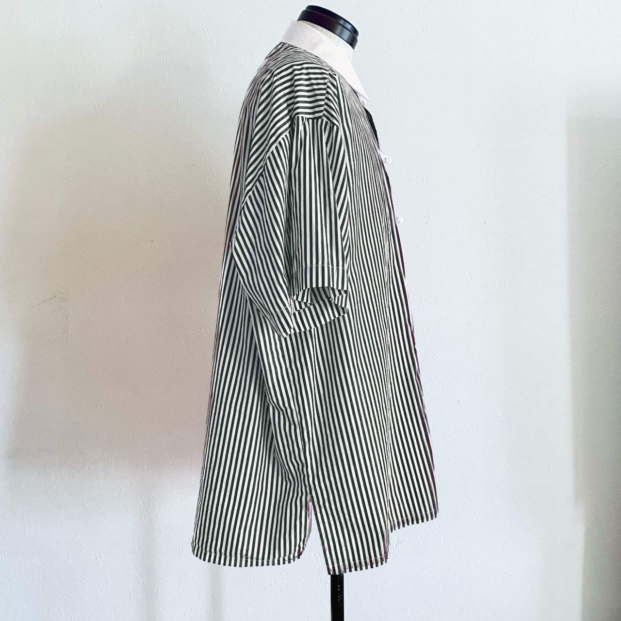 ・型はネックは大きくなく収まりの良いサイズで、身幅を大きく取り、着丈は長過ぎないように調整したオーバーサイズのシャツになります。