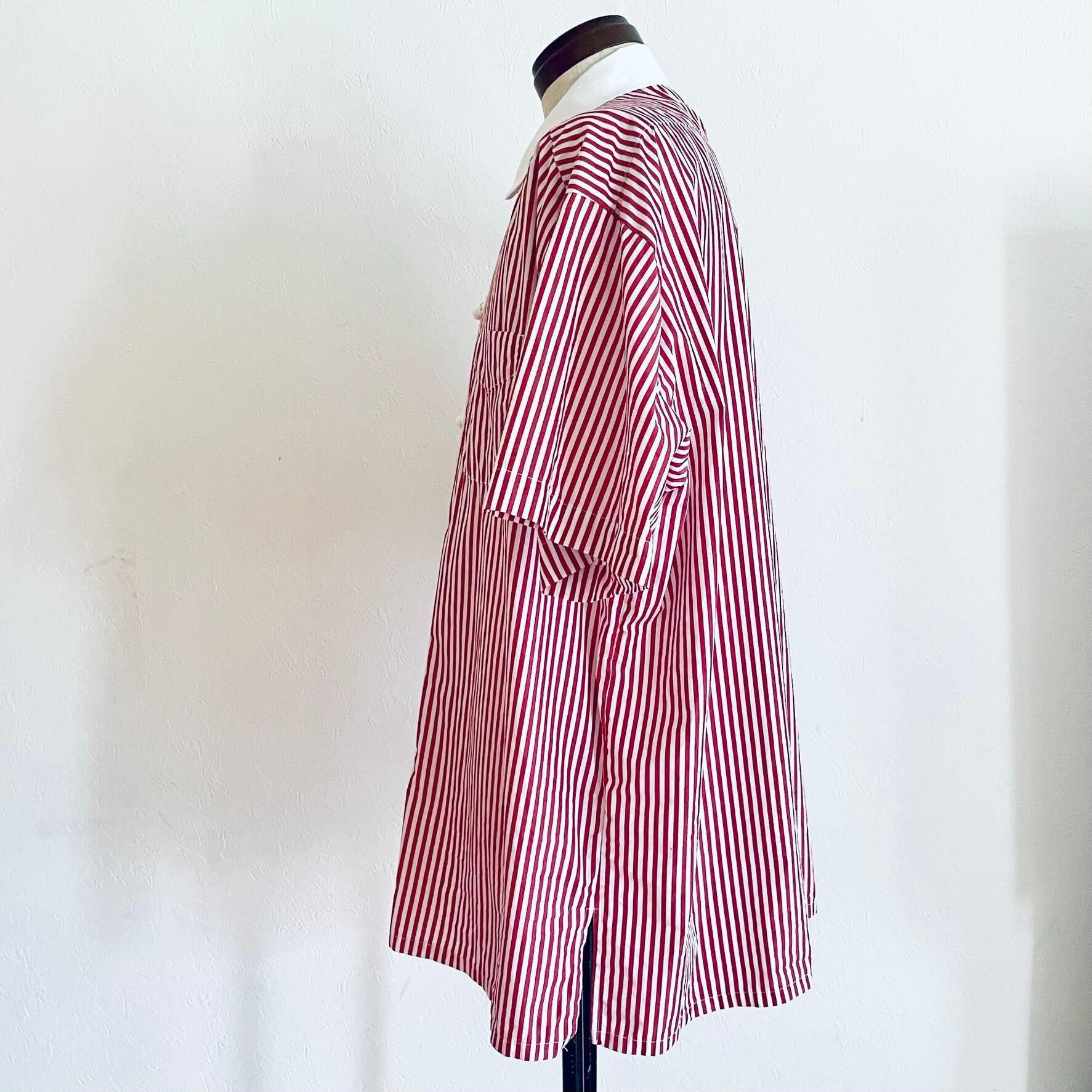 黒白ストライプに黒のチャイナボタン、サックスブルー白に白のチャイナボタン、白無地に黒のチャイナボタンの3色展開