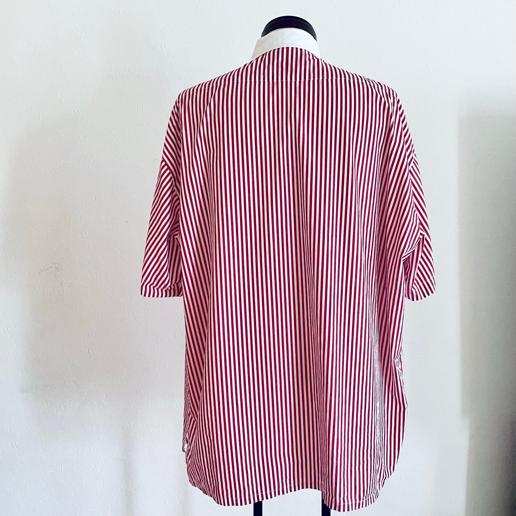 ・型はネックは大きくなく収まりの良いサイズで、身幅を大きく取り、着丈は長過ぎないように調整したオーバーサイズのシャツになります。