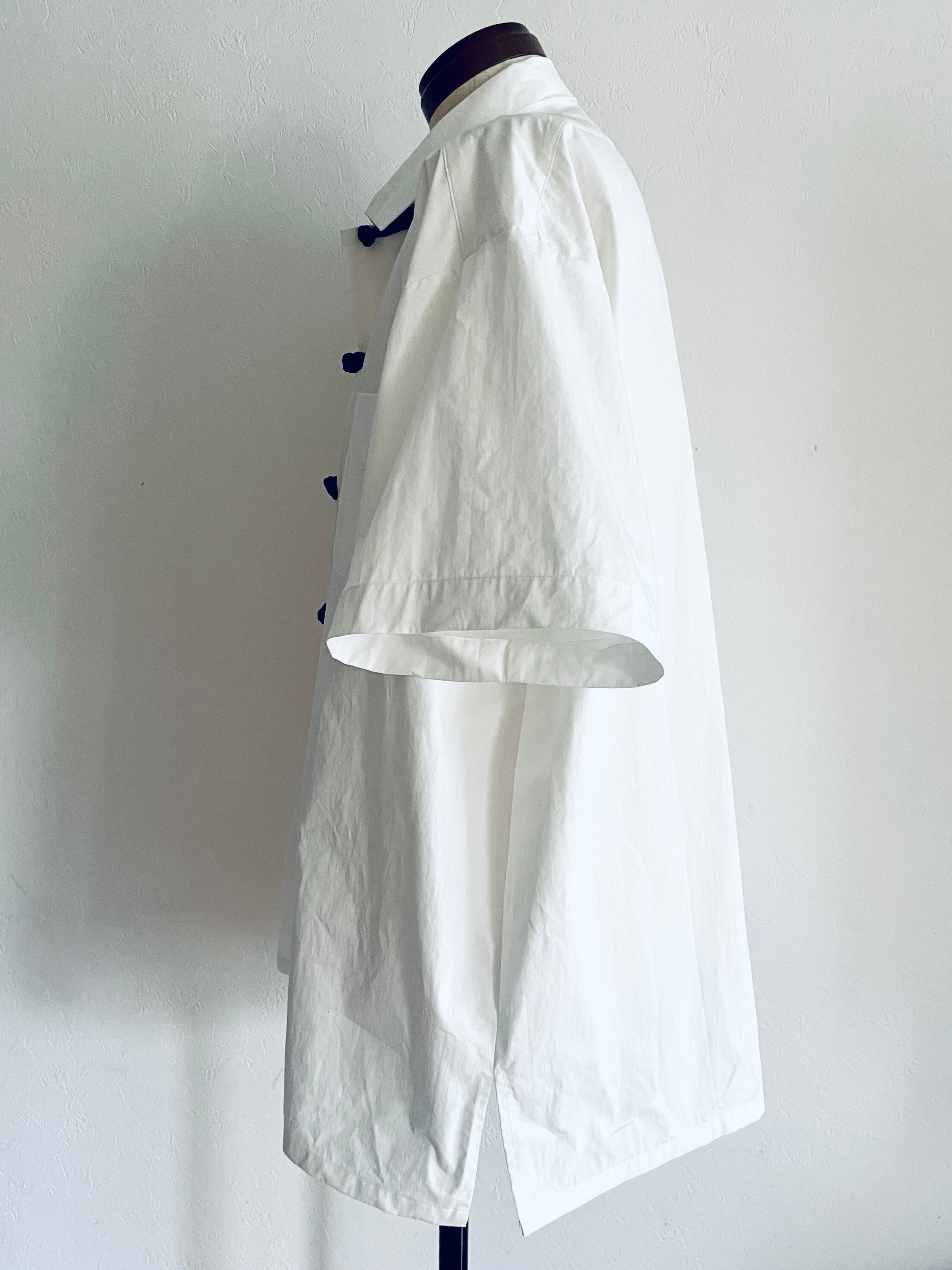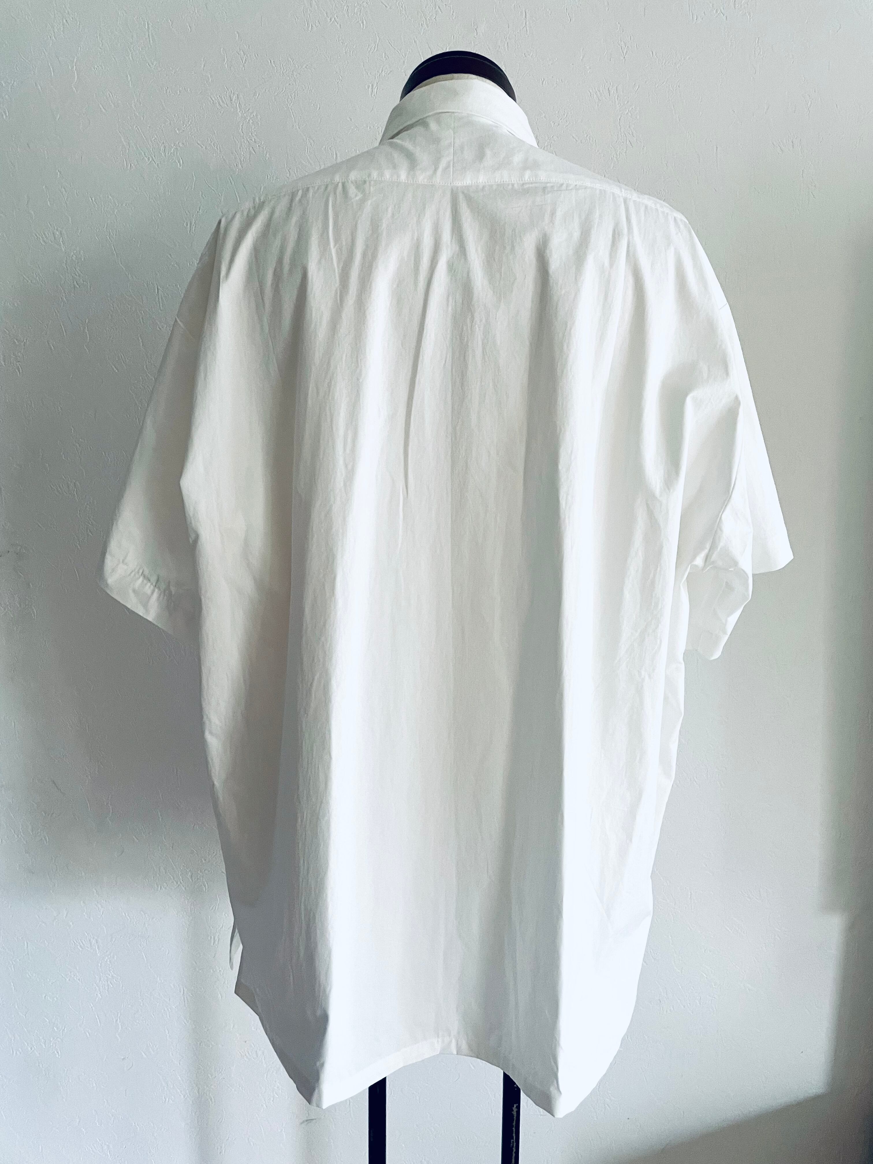 ・型はネックは大きくなく収まりの良いサイズで、身幅を大きく取り、着丈は長過ぎないように調整したオーバーサイズのシャツになります。