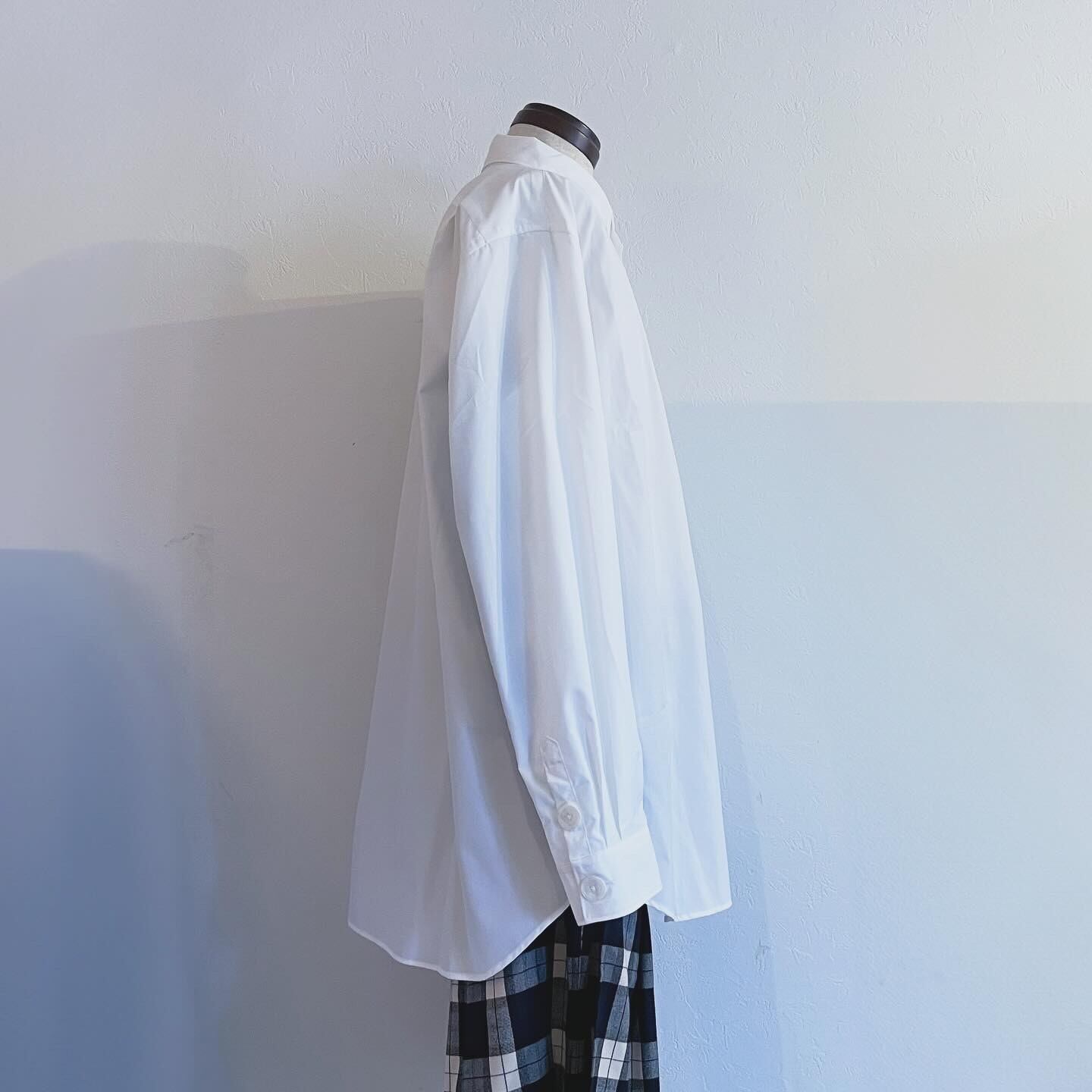 秋に一枚で着て様になる様に、またインナーとして着てもボタン部分が主役になる様に、と作製しております。