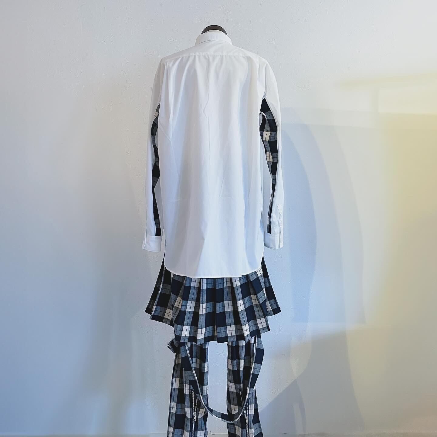 White x Blue/white tartan plaid