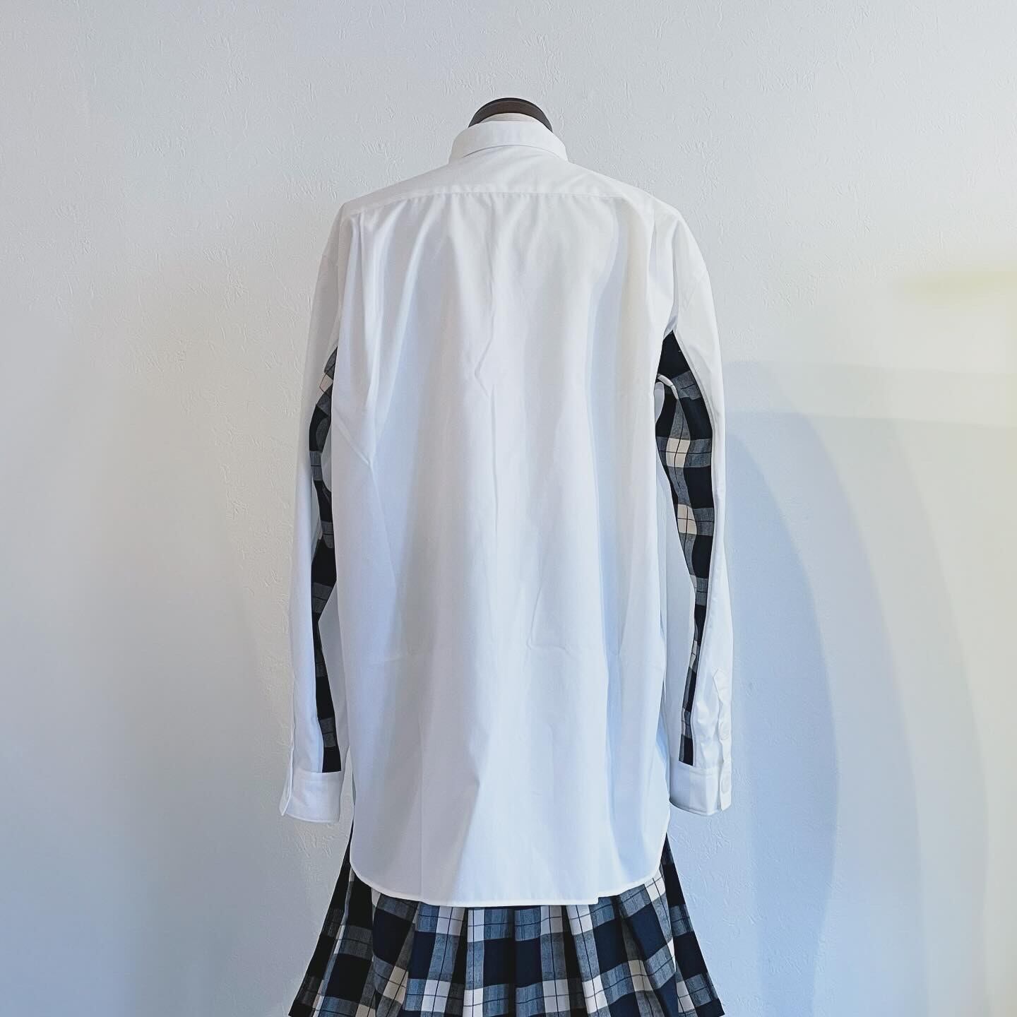 gradient button with Tartan plaid shirts White x Blue/white tartan plaid