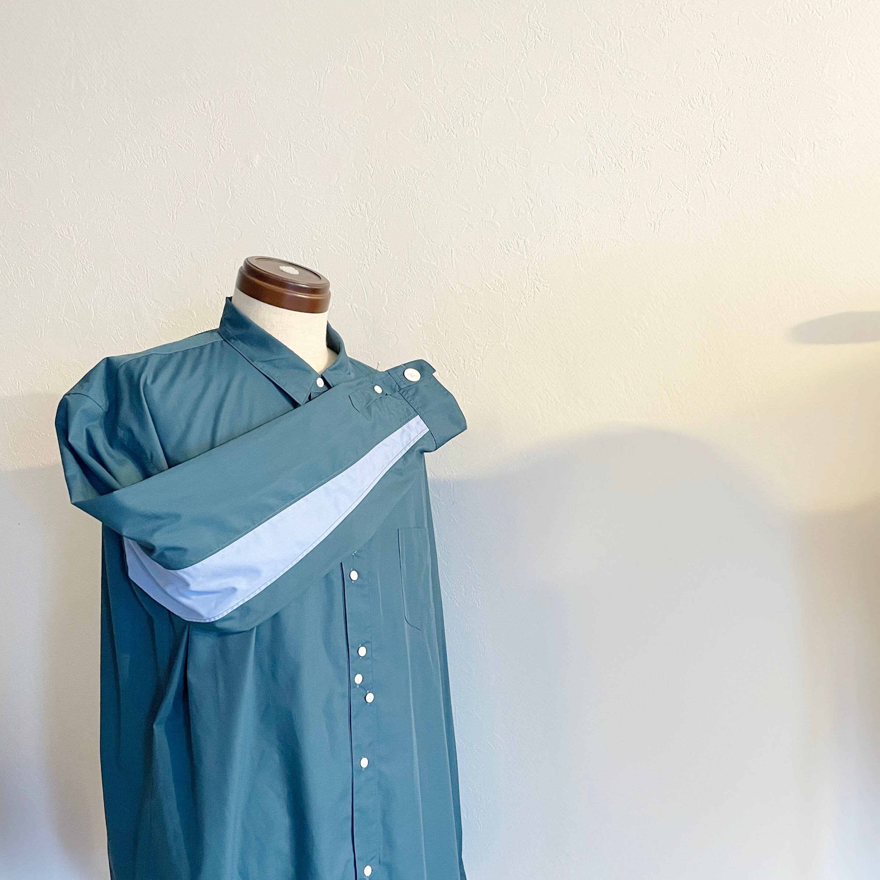 形は以前から作製しているSlack.の定番である袖裏切り替えシャツと同じパターンにて作製しております。