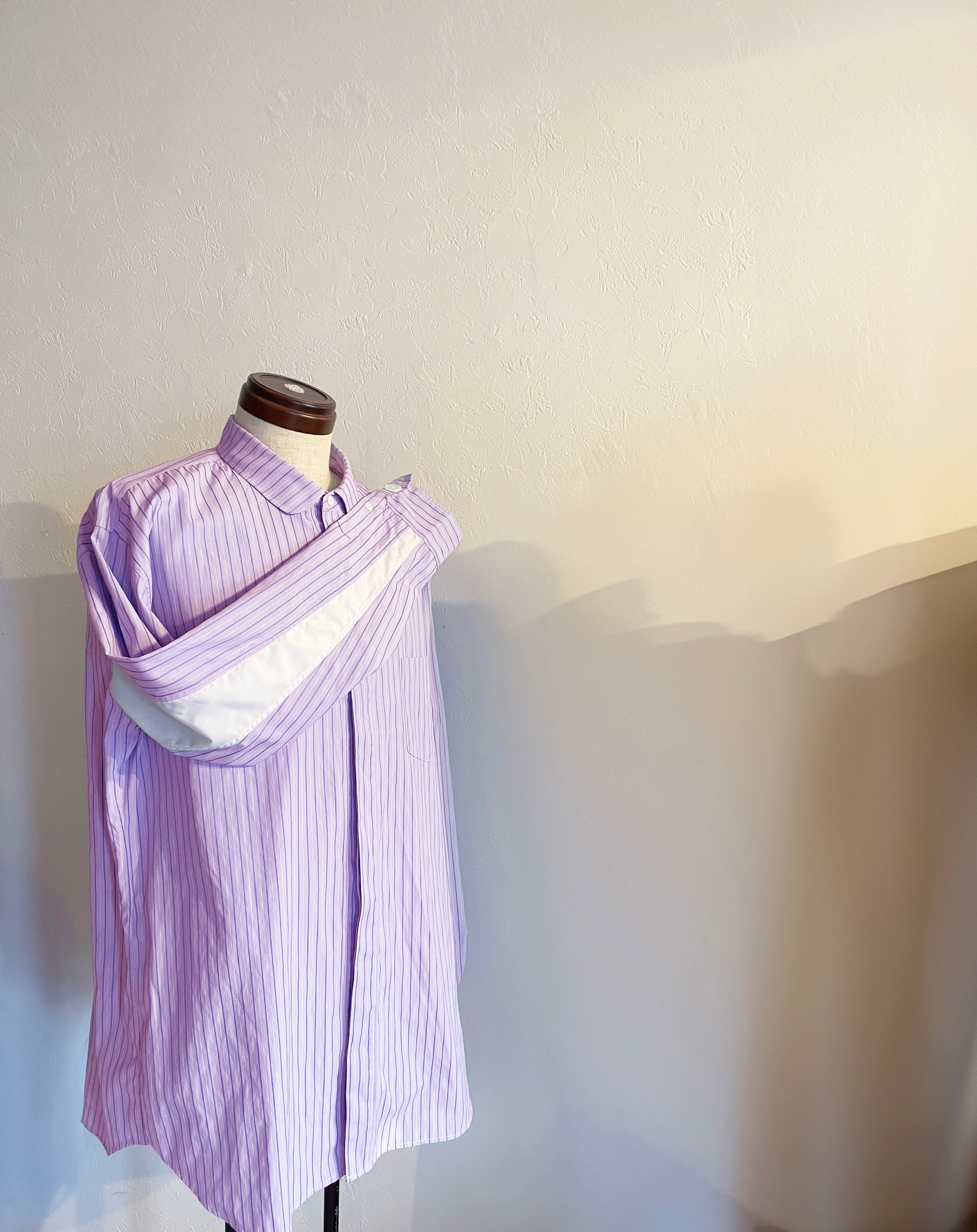 形は以前から作製しているSlack.の定番である袖裏切り替えシャツと同じパターンにて作製しております。