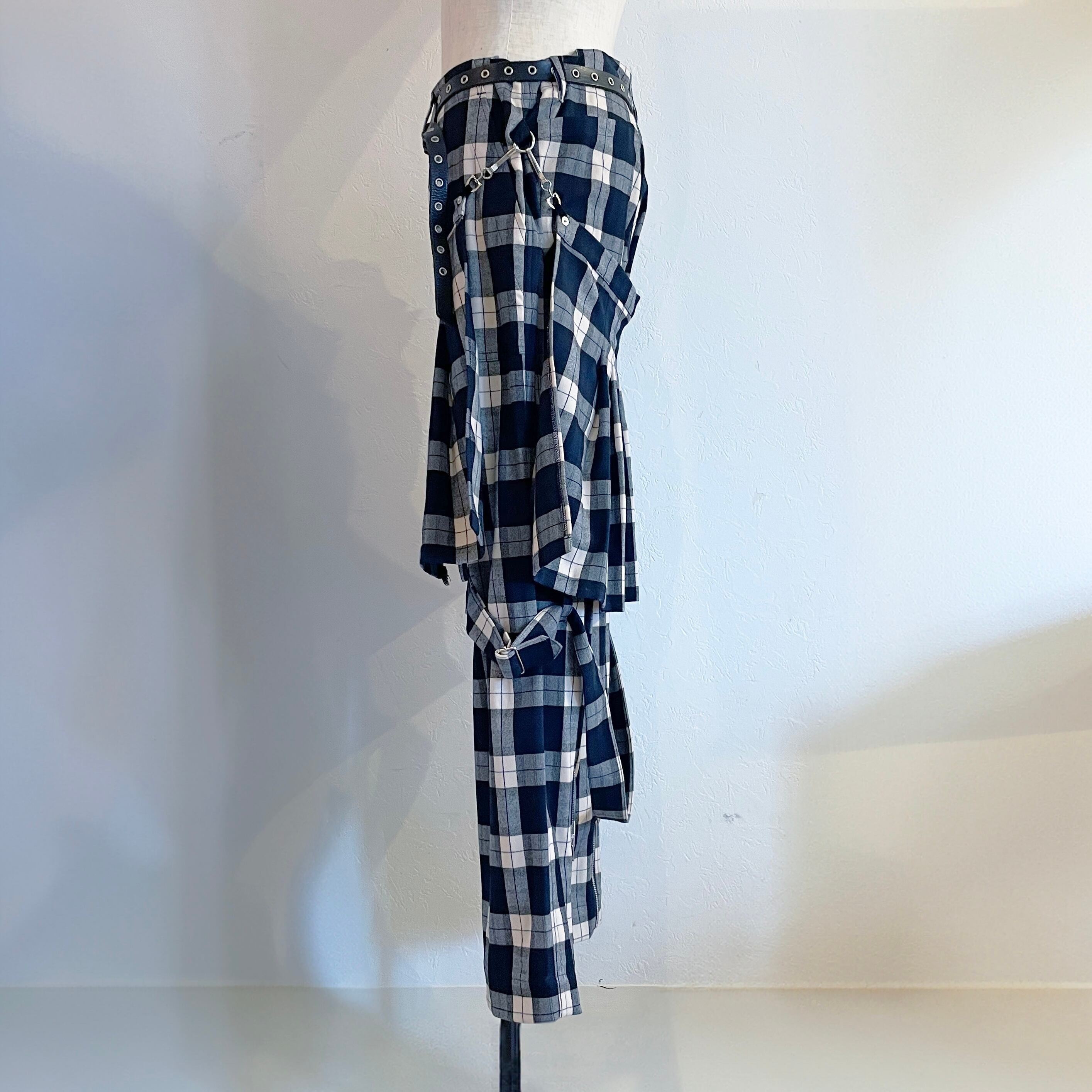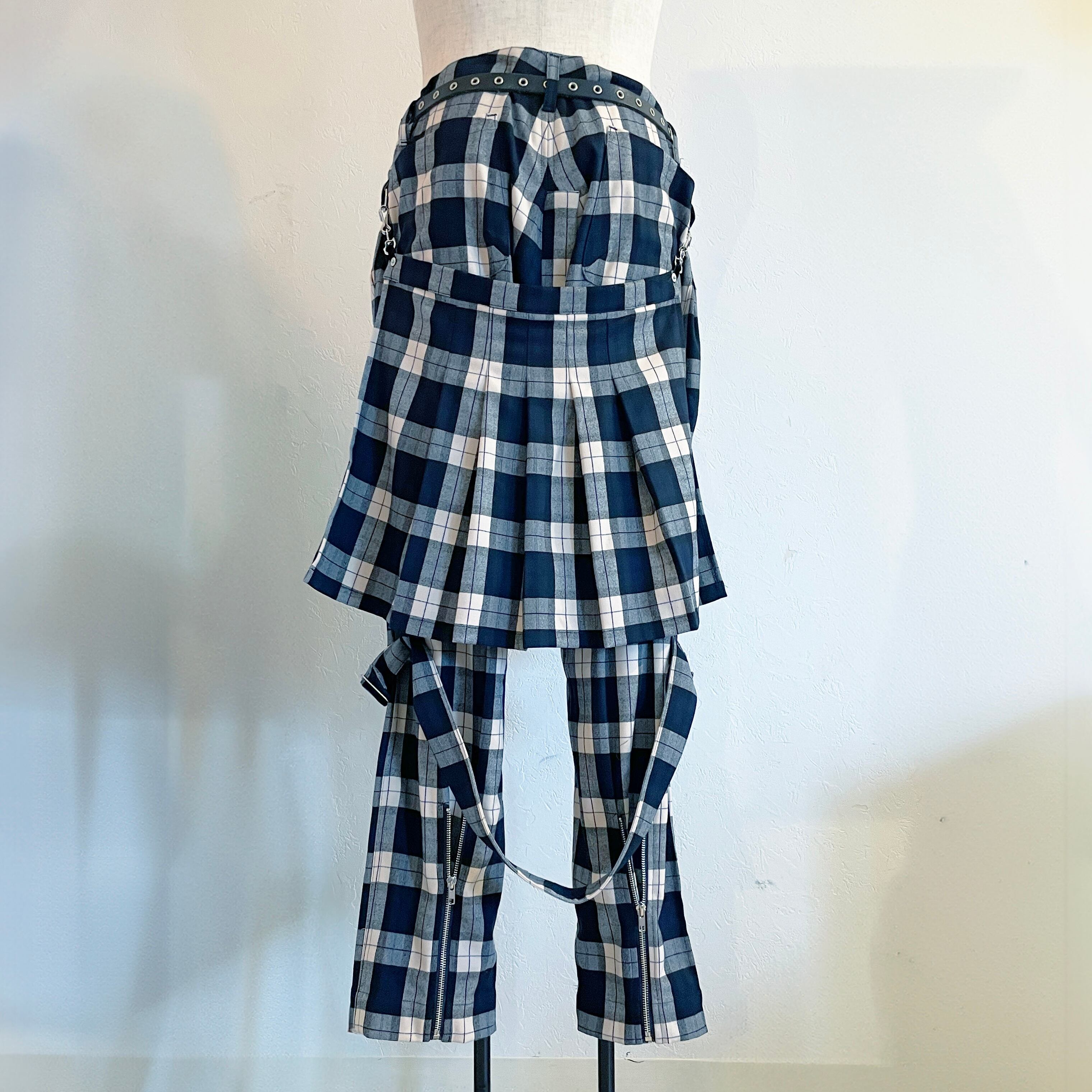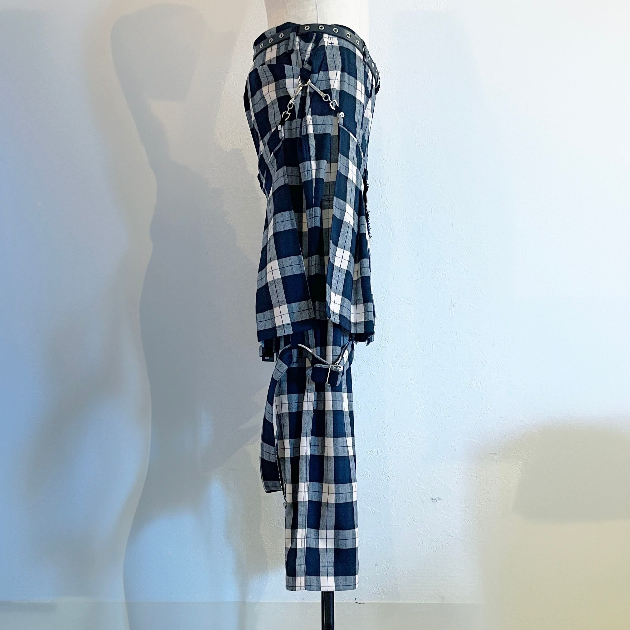 青x白系タータンチェックで作製されたボンテージトラウザーズです。